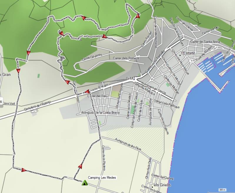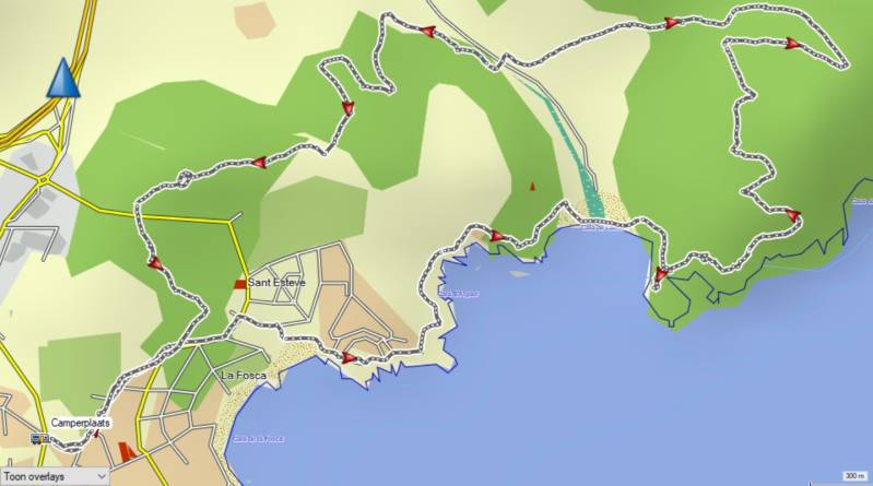 Hiernaast een afbeelding en de GPX file van de wandeling van vandaag. De wandeling start en eindigt op camping Les Medes en is ongeveer 8 km lang.