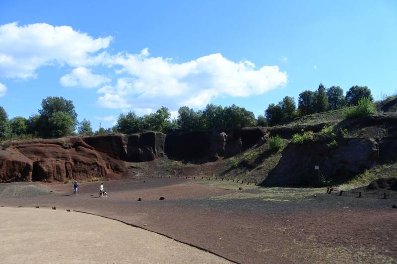 Vlakbij onze camping ligt een vulkaan waar jarenlang lavagruis gewonnen is. Nadat zo’n 2.2 miljoen kuub was afgevoerd heeft men in 1976 besloten dat het wel genoeg was en er vervolgens een beschermd natuurgebied van gemaakt. Na een wandeling van een paar kilometer melden we ons aan de voet van de vulkaan waar een informatiecentrum is gevestigd. Hier laat men in beeld zien hoe een vulkaan is samengesteld en wat er vandaag de dag te zien is. Gelukkig is er ook een Nederlandstalige beschrijving beschikbaar. Vanaf het informatiepunt maken we een rondwandeling langs de voet van de vulkaan die in deze vorm het beste te vergelijken is met een tulband cake waaruit een flinke portie is verdwenen. Goed is te zien hoe de verschillende lagen zijn opgebouwd. De lava is aanvankelijk bijna zwart maar kleurt daar waar de zon er op schijnt langzaamaan rood. Na ons vulkaanbezoek maken we met een extra lus de wandeling af en komen zo weer terug bij de camping.