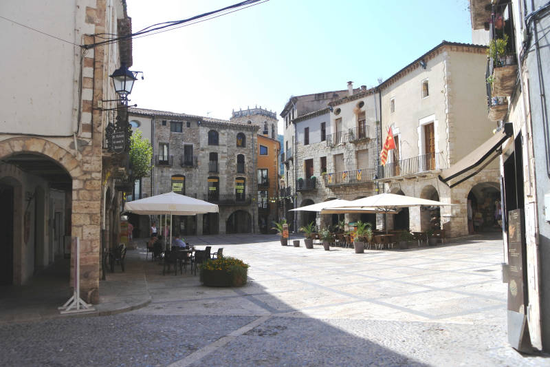 Dé toeristische trekpleister hier in de buurt is het Middeleeuwse Besalú. Vandaag sluiten we ons aan bij de meute en gaan we ook op onderzoek uit. Vóórdat we in het stadje zijn moeten we nog wel zo’n drie kilometer vanaf de camping er naartoe wandelen en straks op de terugweg natuurlijk ook zo’n afstand. We komen vandaag dus wel weer aan onze lichaamsbeweging en dat terwijl de temperatuur deze dagen aardig richting de dertig graden klimt. Besalú ligt op hoogte langs de rivier de Riu Fluviá en werd vanaf de zuidzijde met een hoge muur goed beschermd. De toegang vanaf die kant tot het stadje ging via een hoge brug, waarvan er in de loop der tijd verschillende exemplaren zijn gebouwd. De huidige was tijdens de Spaanse burgeroorlog gesneuveld, maar gelukkig daarna weer in volle glorie hersteld. Het vormt dé blikvanger van het stadje met vlak erachter een mooi maar wel klein historisch centrum. Vanwege het toerisme wemelt het van de restaurantjes en andere neringdoenden, maar dat is tegenwoordig haast onvermijdelijk. De Aziatische toeristen lijken het stadje nog niet te hebben ontdekt. We volgen de plattegrond van de VVV en lopen kriskras door de straatjes waarbij je een paar eeuwen terug waant. Zodra je even buiten het centrum komt ziet het er plots heel anders uit en valt de haveloze toestand waarin veel huizen verkeren op. Voordat we de terugweg aanvaarden strijken we neer op het terras van een restaurantje zodat we de warme maaltijd al in onze buik hebben zodra we thuiskomen.