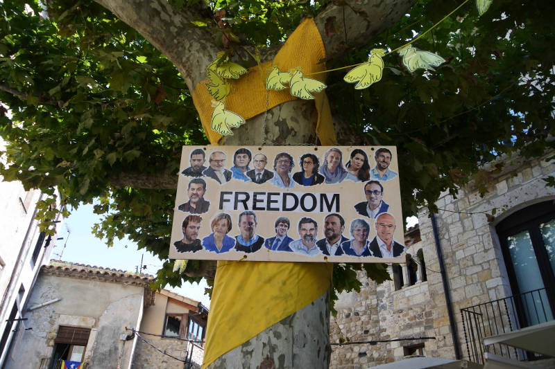 Op 23 maart 2018 heeft het Spaans hooggerechtshof 25 Catalaanse leiders aangeklaagd voor rebellie. In het straatbeeld van Catalonië zie je momenteel overal uitingen voor onafhankelijkheid, de Catalaanse vlag voorzien van blauw vlak met ster en de gele lintjes. Ook hangen overal spandoeken met daarop de tekst dat de politieke gevangenen vrijgelaten moeten worden. Ook in Besalú laat men zich niet onbetuigd, getuige de foto met daarop de afbeeldingen van de betreffende politici. In een gesprek met onze ‘e-bike verhuurder’ maakte hij duidelijk dat de onafhankelijkheidswens nog steeds leeft en sterker wordt. Vooral onder jongeren die aangemoedigd worden door de gebeurtenissen in Hong Kong. Hijzelf was ook voor onafhankelijkheid, want volgens hem zijn de Catalanen toch wel echt ‘anders’ dan de overige Spanjaarden. Wij hebben dat nog niet zo gemerkt, want volgens ons gaat het hier in Catalonië óók echt ‘Spaans’ toe, inclusief het niet al te nauw nemen van afspraken.