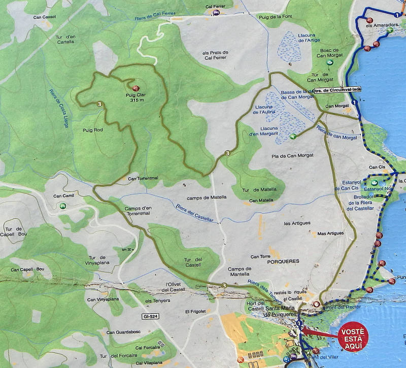 Na het korte kasteelbezoek maken we een rondwandeling naar het noordoosten, via het strand van Platja de Sa Siera en daarna langs de kust richting het zuiden. Opnieuw een mooie wandeling maar wel een stukje lichter dan die van gisteren. Ditmaal geen klauterwerk maar geleidelijk verlopende brede paden. Na afloop rijden we het laatste stukje naar camping Mas Patoxas waar we tot onze verassing te woord worden geholpen door Nederlands sprekend personeel van de receptie.