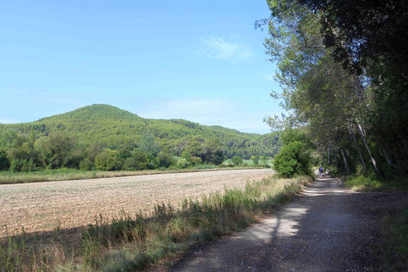 Rondom Banyoles liggen tientallen stompe heuvels, in het Catalaans: Puig genoemd. Een niet al te hoge heuvel nabij het meer is Puig Carlá en vanaf de top ervan heb je een prachtig uitzicht over het meer en de omgeving. Puig Carlá is het hoogtepunt van onze rondwandeling van vandaag, die gelukkig niet al te zwaar is, want ook vandaag wordt het weer pittig warm. Het eerste stuk gaat door open land, maar daarna lopen we vooral onder de bomen. Het is een mooie wandeling waarbij we langzaam stijgen en dus vrij gemakkelijk de top van de heuvel bereiken. Zoals beloofd een prachtig uitzicht ondanks dat het wat heiig is. Ook hier behoorlijk warm zodat we binnen korte tijd de beschutting van het gebladerte weer opzoeken. De terugweg gaat langs een mooi slingerend smal pad en na in totaal twee en half uur zijn we weer terug op de camping.