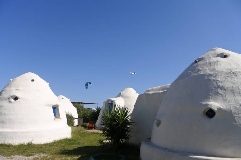 Vandaag gaan we naar een camping even ten zuiden van Barcelona. Ons reisdoel is Camping Tres Estrallas even ten zuiden van El Prat. Aanstaande week vliegt Martien even terug naar Nederland voor een checkup bij de dokter. Vanaf de camping is het niet ver naar het vliegveld en zijn er goede verbindingen met de Barcelona. Sinds gisteravond regent het en ook voor vandaag wordt nog flink wat water verwacht. De reisdag van vandaag komt dus niet slecht uit, al rijden we natuurlijk liever met goed weer. Het wordt een rit van ruim twee uur met onderweg in Olot nog een stop om de boodschappenvoorraad aan te vullen. Tegen vier uur melden we ons bij de camping en het eerste wat opvalt is de strenge bewaking aan de poort. We mogen zelf een plekje uitzoeken en vinden er een met ruimte en privacy op een uithoek van de camping. Bij nader inzien volgens ons de beste plek die nog beschikbaar is en vermoedelijk over het hoofd gezien door andere campinggasten. Bijkomend voordeel is dat we zo ver als mogelijk verwijderd zijn van de toch wel lawaaiige snelweg en een niet fris ruikend afwateringskanaal. We staan een beetje verscholen achter een aantal ‘ecologische domo’s’, dit zijn een soort stenen iglo’s met een Spartaanse inrichting. Met de zee binnen handbereik zijn we dik tevreden met ons verworven plekje. Bij het inschrijven krijgen we een polsbandje om zoals je in een pretpark wel eens aantreft. Het is een grote camping en dichtbij een grote stad, wellicht de reden voor de stringente bewaking en de polsband markering.