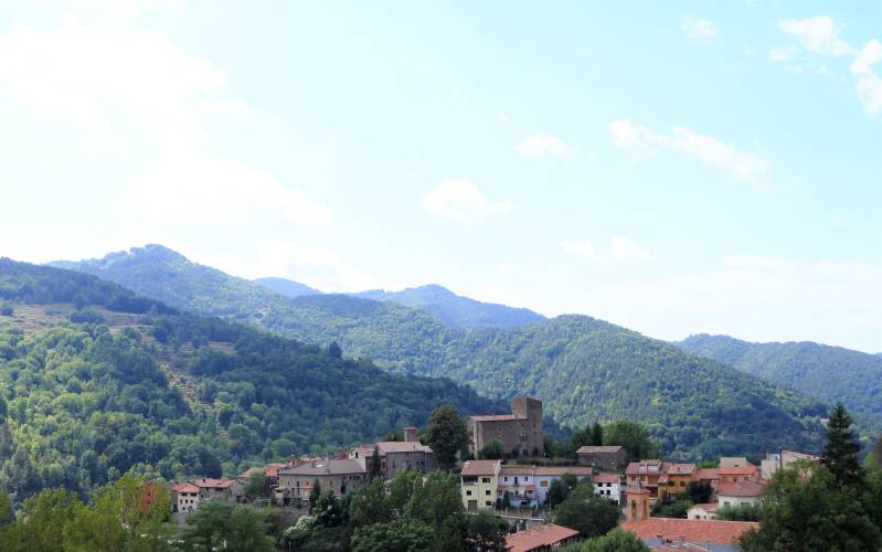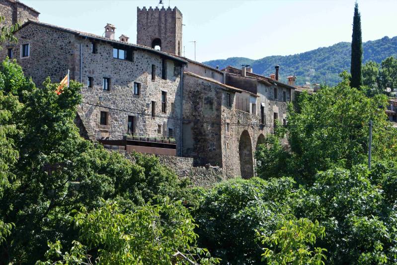 Middeleeuws gedeelte van Santa Pau aan de overzijde van de Riu Ser