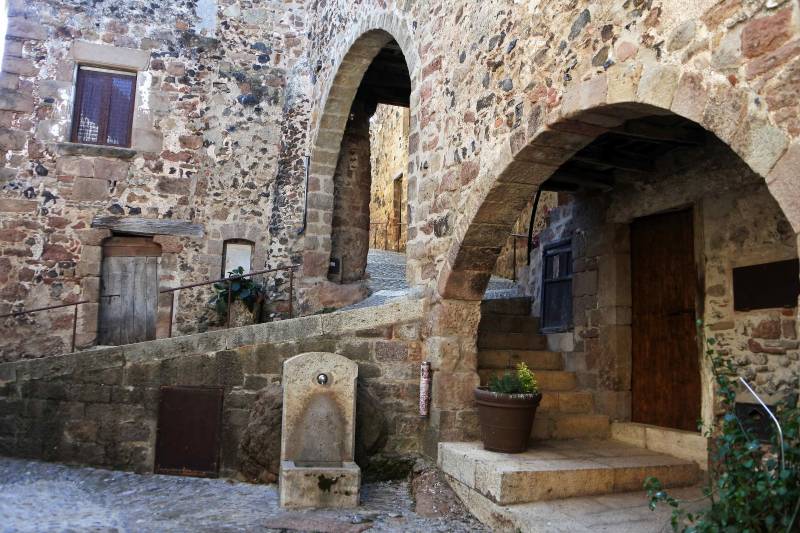 Het weer voor vandaag en de komende dagen ziet er goed uit, zon en een temperatuur van ruim twintig graden. Vandaag trekken we er op uit voor een wandeling in de omgeving. We hebben het dorp Santa Pau op het oog wat een mooie inloopwandeling van ongeveer acht kilometer kan worden. Vanaf de camping gaat de route de eerste paar kilometers omlaag, zodat we al weten dat het op de terugweg een pittige klim zal worden. Ons eerste doel in Santa Pau is het toeristenbureau en we slagen er in om nog voor de siësta de gewenste info over de omgeving te verkrijgen. Op de plattegrond is een rondwandeling te zien, maar voor het startpunt ervan is het nog even puzzelen. Zodra we het begin gevonden hebben verbazen we ons wat we zien. Een prachtig geconserveerd middeleeuws plaatsje waar de tijd heeft stilgestaan. Volgens het toeristenbureau zijn er meer leuke dorpjes in de omgeving dus dat belooft nog wat. De terugweg verloopt in de felle zon en tegen de heuvel op wat moeizaam, maar voldaan door hetgeen we in Santa Pau hebben gezien, nemen we dat maar voor lief.