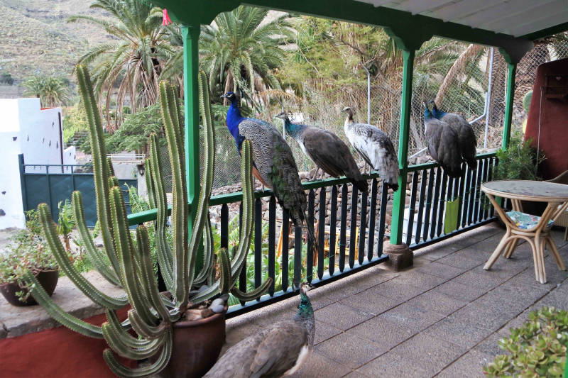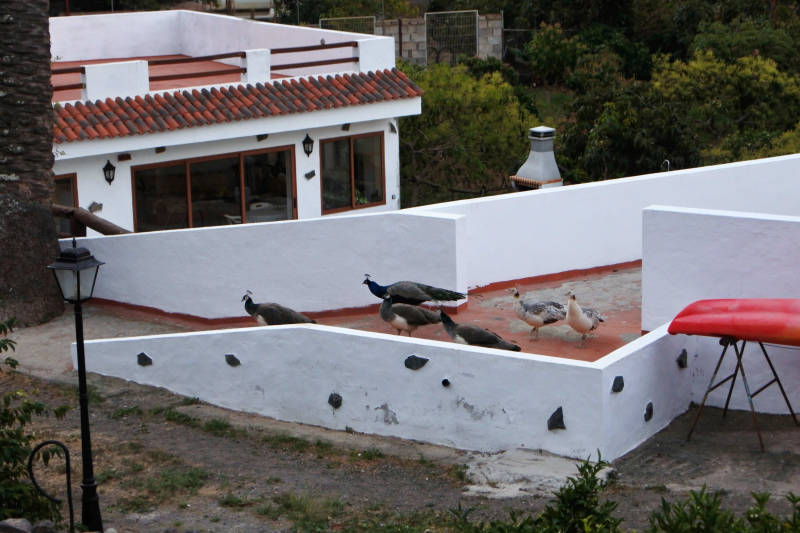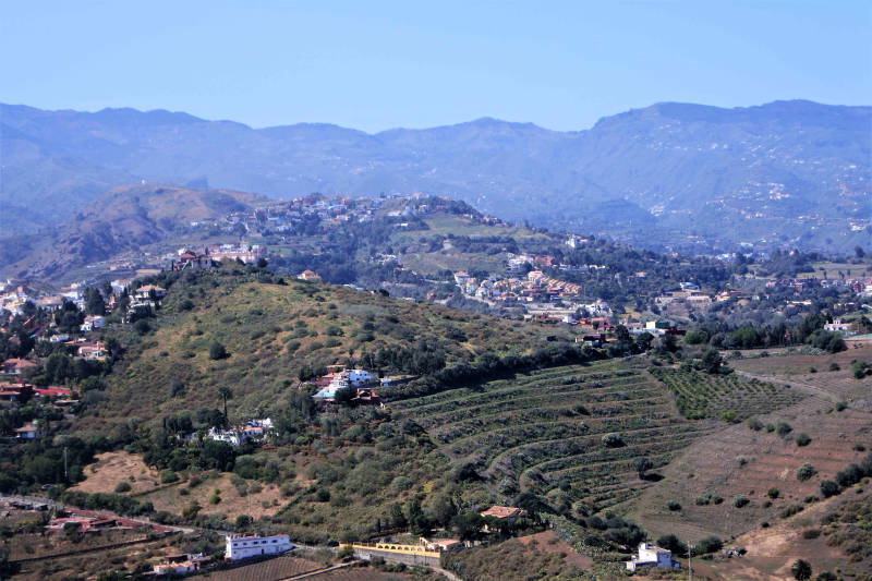 Vanuit de vallei waaraan ons huisje ligt, klinkt dag en nacht een kakofonie van geluiden omhoog. Vogels, pluimvee en soms ook honden doen hun best om hun domein af te palen. Wij vinden het wel leuk, maar dat veranderde afgelopen nacht even toen een paar pauwen van zich lieten horen, en dan ben je wel meteen wakker. Het voorval duurde gelukkig maar kort zodat we daarna weer snel de slaap te pakken hadden. Voor vandaag staat de eerste rondwandeling op het programma en dat is direct een pittige. Om half elf vertrekken we te voet vanuit onze casita richting San Pedro, waar we gisteren ook zijn geweest. Vandaar zoeken we een pad dat ons aan de overzijde van de vallei de bergen in voert. Het dubbele aantal hoogtemeters dan gewoonlijk maakt dat we het rustig aan doen en na de nodige stops de top van de Montaña Bibique op 650 meter hoogte bereiken. Een prachtig uitzicht over het dal, het stadje Agaete en de hele noordwest punt van het eiland is onze beloning. Vandaar volgen we een pad langs de berghelling richting Agaete dat golvend omhoog en omlaag gaat. Vooral als het pad omlaag gaat is het daarbij oppassen geblazen. De lava, waar vrijwel geheel Gran Canaria uit bestaat, is tot fijn gruis vermalen en maakt dat je gemakkelijk onderuit glijdt. Nabij Agaete wordt het pas helemaal slim, steil omlaag en gruis, een combinatie die maakt dat we maar langzaam dalen en daarbij elkaar ondersteunen. Vanaf Agaete gaat de route door de vallei terug naar onze casita waar we pas na vijven arriveren. Een prachtige maar toch wel uitputtende tocht zit er op.