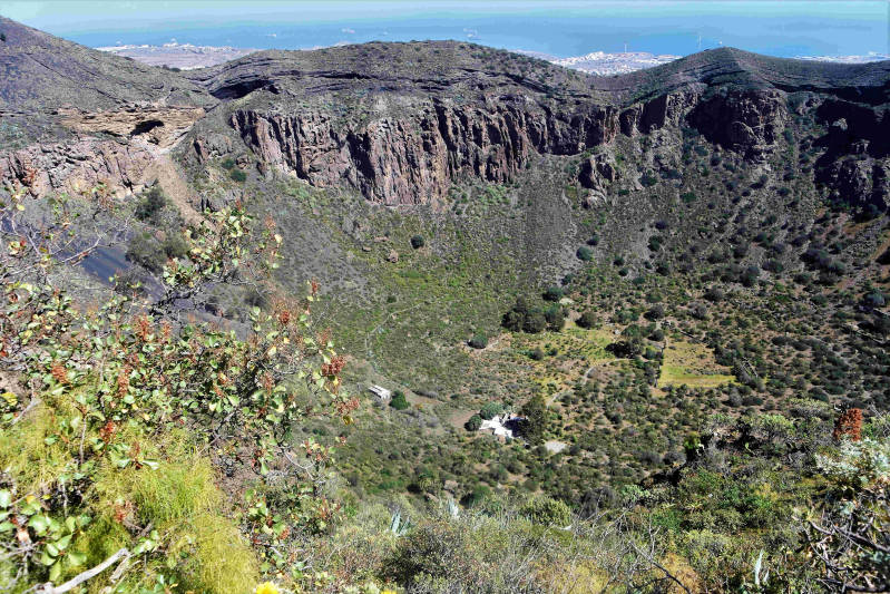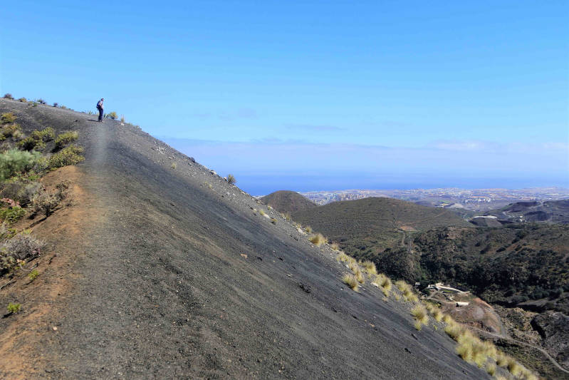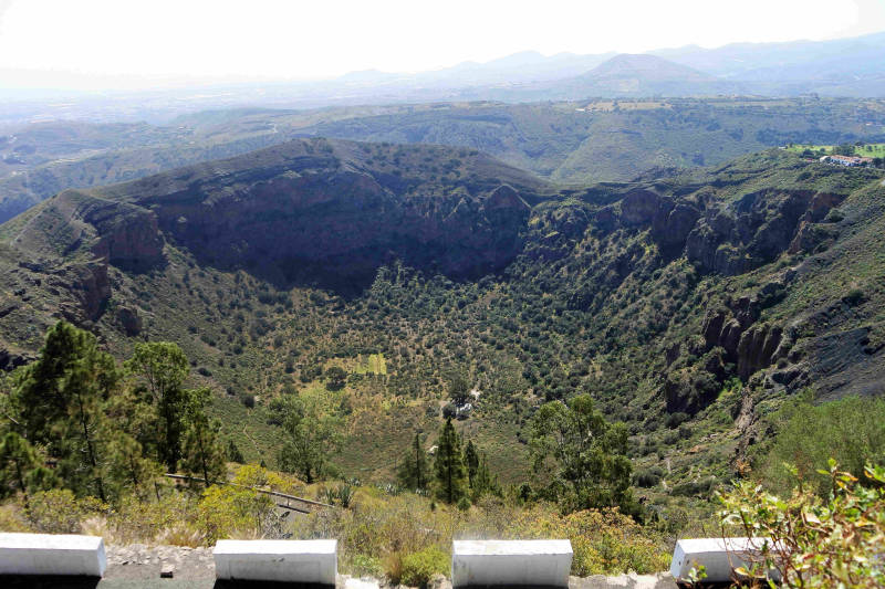 Aan de oostkant van het eiland, op zo’n vijftig kilometer rijden, ligt een combinatie van een berg en een enorme vulkaan krater. Na een klein uurtje rijden klimmen we, door een paar rondjes langs de kegelvormige berg te rijden, naar de top van de Pico de Bandama. Vanaf de top op 569 meter, hebben we een prachtig uitzicht op onder meer de hoofdstad Las Palmas en de wijde omgeving. Pal naast de berg ligt de Caldera de Bandama, met een diameter van 1 km en een diepte van 200 meter. Ook die kun je vanaf de top van de berg natuurlijk prachtig bekijken. Vervolgens rijden we een stukje omlaag en parkeren de auto bij het restaurantje van Casa Paco. Naast het restaurant begint een wandelroute die naar de bodem van de krater leidt, maar ook een route die over de rand van de krater gaat. Wij kiezen voor de laatste. Enerzijds omdat de route die de krater in gaat, vanwege vulkaangruis toch wel wat lastig lijkt. Maar ook omdat we vanaf de kraterrand mooie uitzichten hebben. Ook de route over de rand van de krater blijkt uitdagend genoeg, omdat deze beurtelings fiks daalt en stijgt en deze ook is voorzien van materiaal waardoor je gemakkelijk onderuit gaat. Niettemin bereiken we na ongeveer twee uur wandelen weer veilig onze auto. Nog een uurtje later zijn we weer thuis en kijken terug op een zeer geslaagde dag met prachtig weer erbij.