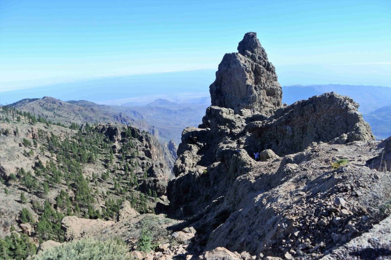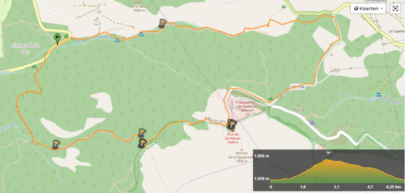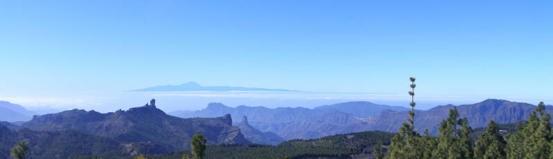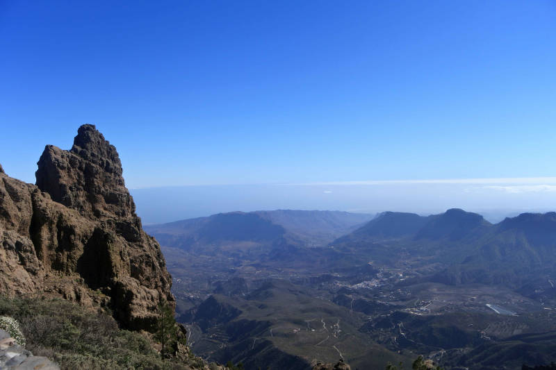 De Pico de las Nieves is met 1949 meter de hoogste berg van Gran Canaria en ligt ongeveer in het midden van het eiland. Hemelsbreed is dat maar op zo’n 20 kilometer vanaf ons verblijf vlakbij de kust. Met de auto erheen gaat langs een enorm kronkelige weg van 49 km en vergt volgens de TomTom bijna anderhalf uur. Gelukkig is het asfalt goed en is onze auto voorzien van een automaat, maar dan nog vinden we het welletjes zodra we de parkeerplaats van Llanos de la Pez bereiken. Vanaf hier maken we een rondwandeling die ons ook over de top van de berg voert. We treffen het vandaag met het weer, want het kan koud en mistig zijn op de top. Op weg erheen reden we eerst een stuk in de wolken, maar verderop brak de lucht open en bleef het de rest van de dag onbewolkt. Onderweg tijdens een stop op een uitkijkpunt en op de Pico de las Nieves genieten we daarom van prachtige vergezichten. Maar met eigen ogen zie je die veel mooier dan de foto's laten zien. Na een mooie wandeling van ruim drie uur aanvaarden we de thuisreis. Opnieuw een stevig potje bochten rijden natuurlijk, en nu over het algemeen naar omlaag. Tegen zevenen komen we pas thuis en als beloning zoeken we vanavond het restaurant aan de overzijde van de weg op.