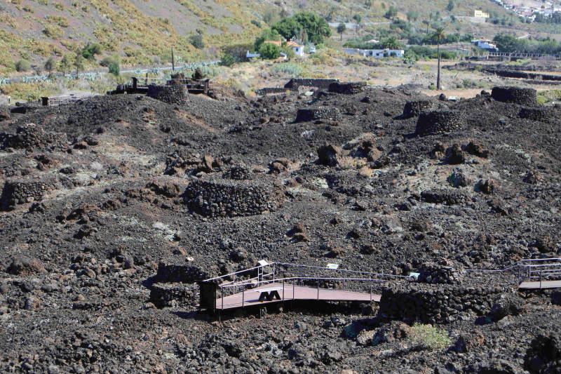 Na twee toch wel inspannende dagen doen we het vandaag wat rustiger aan. Lekker uitslapen en na het ontbijt een poosje in het zonnetje zitten, maken dat het al na het middaguur is wanneer we de plannen voor vandaag de revue laten passeren. Tot nu toe zijn we in Ageate alleen in de Hortus geweest en natuurlijk met de auto al talloze malen door Ageate gereden. Toch is er volgens onze info nog meer te zien. Te beginnen met Necropolis de Máipez, dat op die van Artenara na de grootste oude begraafplaats van Gran Canaria is. In het verleden stroomde de lava van een drietal vulkanen door de vallei van Ageate. Op de uitlopers ervan is een lava veld ontstaan dat door de toenmalige bewoners Máipez werd genoemd (een verbastering van Mal País ofwel ‘slecht land’). Hier werden zo’n 1300 jaar terug ruim 700 graven gemaakt van ter plekke aanwezige ruwe lava brokken.