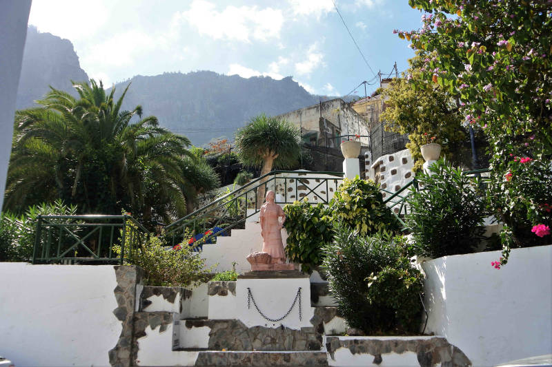 Daarna lopen we terug naar het centrum en zoeken een paar andere culturele ‘hoogtepunten’ van het stadje: Casa de la Cultura en Museo de la Rama. Beiden blijken helaas gesloten en dus rijden we naar het havenplaatsje Puerto de las Nieves, dat op een paar kilometer afstand van Ageate ligt. Hier maken we een wandeling langs de boulevard, door het plaatsje en vooral ook langs het havenfront met talloze restaurantjes. Zodra we bij een van de restaurantjes stil houden, worden we aangesproken door een in België geboren Canarische restauranthouder, en die ons een heerlijke vismaaltijd weet voor te zetten. En passant doet de restauranthouder zijn best om ons in de toekomst in een van de appartementen van zijn vriend onder te brengen. Spotgoedkoop, voor maar 500 euro per maand voor twee personen. Wij wandelen na het eten nog even langs de vissershaven en zoeken daarna de auto weer op. Een leuk havenplaatsje dat wel, maar wij zien ons daar in de toekomst niet in een, weliswaar spotgoedkoop, appartementje terugkomen.