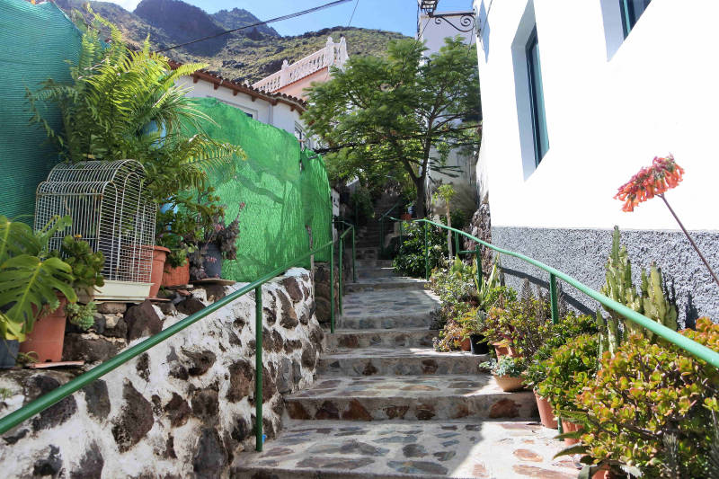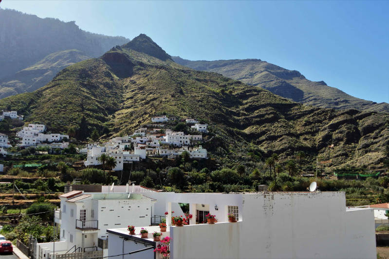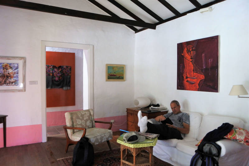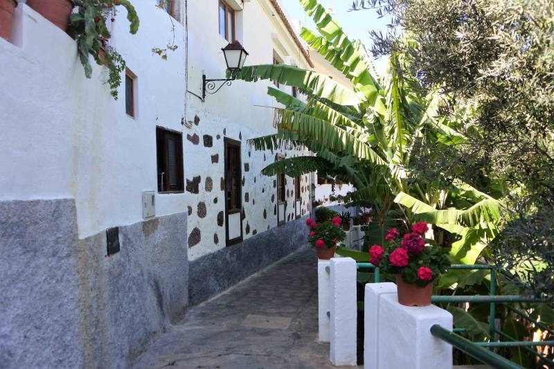 We hebben vannacht goed geslapen en wanneer we rond negen uur onze ogen openen, zien we door het raam een groen tapijt hangen. Het blijkt de overzijde van de Valle de Agaete, het dal waar we vanuit ons huisje op uitkijken. Met het zonnetje er al vroeg bij, geen verkeerde manier om wakker te worden. Na het opstaan inspecteren we ons vakantiehuisje. Het is oud en eenvoudig ingericht maar ook tamelijk groot. Niet iets dat we zelf op dezelfde wijze zouden bouwen en inrichten, maar als vakantiehuis kan het er dik mee door.