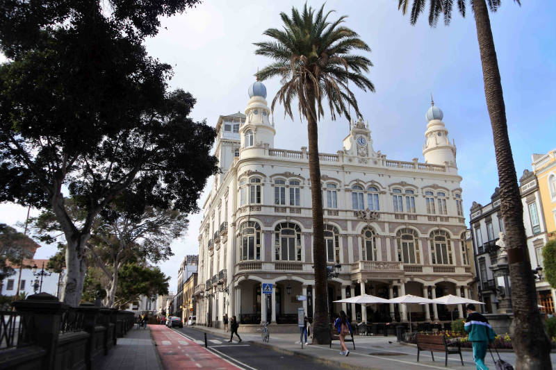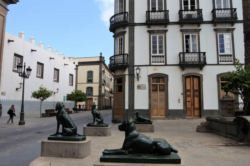 Las Palmas is, als hoofdstad van Gran Canaria, flink uit zijn jasje gegroeid. Bijna de helft van de totale eiland bevolking (die ruim 1 miljoen bedraagt) woont in of vlakbij de stad. Dat maakt dat de stad geregeld dichtslibt met autoverkeer. Er is immers geen trein of metro op het eiland en ook de fiets of bromfiets is bij het merendeel van de bevolking niet populair. Op advies van onze huisbaas Sancho parkeren we aan de rand van de stad en nemen vandaar de bus naar het centrum. Daar aangekomen zoeken we eerst naar het belangrijkste museum van Gran Canaria, Casa de Colon. Zoals bekend heeft Columbus (volgens de Spanjaarden Colon) op zijn ontdekkingstochten naar Amerika (of India zoals hij dacht) regelmatig de Canarische Eilanden aangedaan. Naar het schijnt heeft hij zelfs nog enige tijd in dit monumentale pand gewoond. Het is nu ingericht met allerlei replica’s en overzichten die zijn reizen gedetailleerd in beeld brengen. Daarnaast bevat Casa Colon ook een grote collectie schilderijen vooral uit de zeventiende en achttiende eeuw. Alles is smaakvol in beeld gebracht en het bekijken zeer de moeite waard.