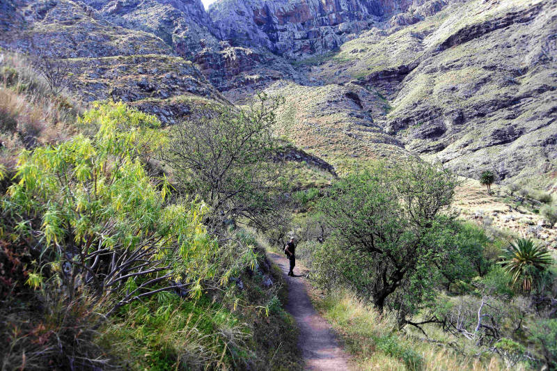 Na dit voorval inspecteren we de buitenboel, wat een beter oordeel oplevert. Een heerlijk overdekt terras en nog een zitje in de mooie tuin vol cactussen en bovendien volop privacy. Samen met het uitzicht over de vallei brengt dit ons snel in vakantiestemming. In de loop van de dag rijden we naar de supermarkt waar we gisteravond al zijn geweest. Met de nu ingeslagen voorraad kunnen we de volgende dagen wel doorkomen. Aan de overkant van de weg langs onze casita bevindt zich een lokaal restaurant, hoewel het bord aangeeft dat de keuken 'internationaal’ is. Voor onze het sein om het restaurant vanavond te testen, zodat de kookpannen vandaag in de kast kunnen blijven.