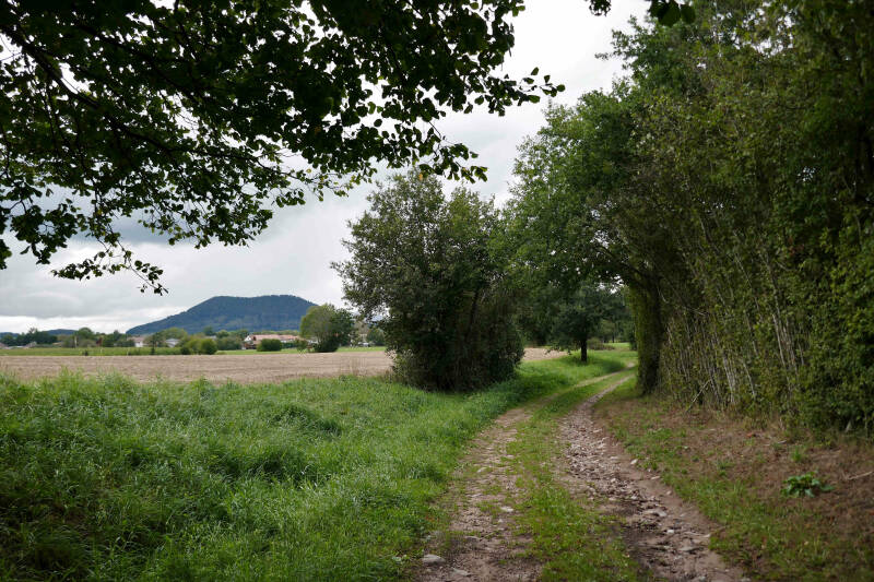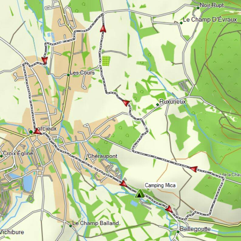 Afgelopen nacht heeft het nog flink geregend, maar vanochtend was er toch al wat blauwe lucht te zien tussen de wolken. De Route de Crêtes, ons wandelgebied, ligt op een kleine 1000 meter hoogte, met uitschieters tot boven de 1300 meter. Naar onze inschatting zal het nog wel even zal duren voordat alle waterdamp daar is verdwenen. Vandaar dat wordt besloten om ons verblijf hier op de camping nog een dagje te rekken. Dit geeft tevens de gelegenheid om een inloopwandeling in de omgeving te maken. Het ‘Rondje Corcieux’ is een wandeling van Wikiloc, die we zelf zodanig aanpassen dat het begin en eindpunt bij onze camping komt te liggen. Eerst een stukje langs de weg, maar daarna ‘cross country’ zodat we al een beetje de smaak te pakken krijgen. Vervolgens met een boog naar het dorp Corcieux waarbij zich onderweg al weer een regenbui aandient.