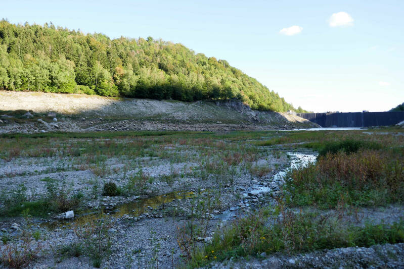 Na een steile afdaling aan de andere kant van de berg komen we vlakbij de stuwdam. Maar ook deze kant van de dam is hermetisch afgesloten en hier is er géén ontsnappingsroute voor voetgangers…. of toch wel. Aukje spot een mogelijke route over de bodem van het deels leeggelopen stuwmeer. Een potje struinen en over stroompjes springen begint (het stuwmeer is niet helemaal leeg) en al zigzaggend bereiken we de andere oever van het stuwmeer. Na het vakkundig bedwingen van de afzetting, komen we weer op het pad dat ons terug naar de camping voert. Tevreden met het resultaat, maar wel een paar uur later dan gepland, schuiven we aan voor het gebruikelijke pilsje op de goed afloop.