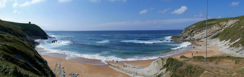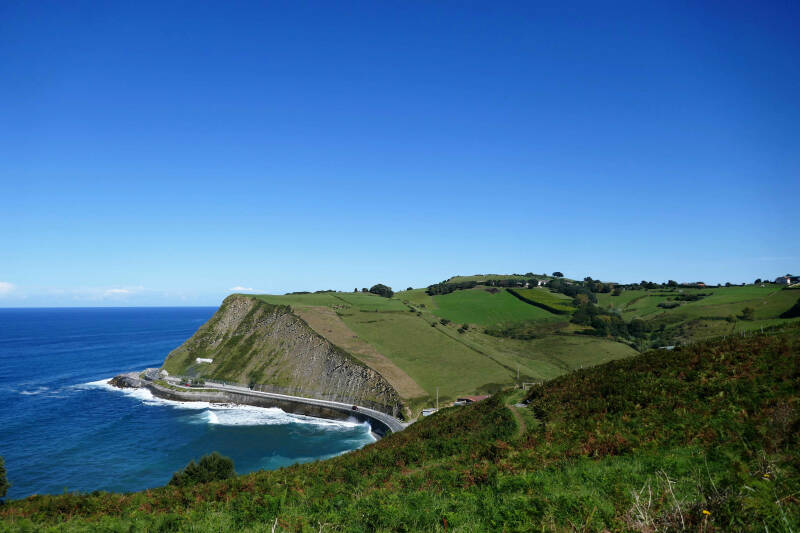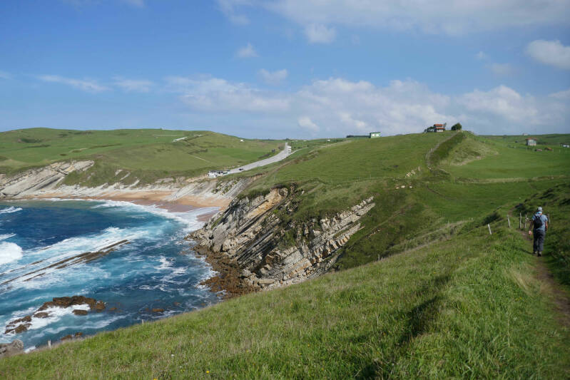 Vandaag loopt de wekker om zeven uur af. Op ons programma staat een kustwandeling van ongeveer vijftien kilometer vanuit het Deba naar Zumaia. Niet bijzonder lang op het eerste gezicht, maar het parcours met een flink aantal klimmetjes en afdalingen maakt dat we er voor ons doen vroeg mee willen beginnen. Ook vandaag is het, net als de afgelopen twee dagen, weer stralend weer. Om negen uur trekken we de camperdeur achter ons dicht en wandelen naar het treinstation voor een ritje met de boemeltrein naar Deba. Daar moeten we direct al omhoog, maar gelukkig heeft de gemeente ervoor gezorgd dat er er een tweetal openbare liften zijn die onze beenspieren de eerste meters ontlasten. Maar daarna moeten we zelf aan de bak. Een prachtige en afwisselende wandeling volgt en maakt dat we (ook door de pauzes) pas om vier uur in Zumaia arriveren. Een heerlijke pizza zorgt ervoor dat wanneer we om half zes weer thuis zijn er niet hoeft te worden gekookt. Tevreden kijken we terug op een prachtige wandeldag.