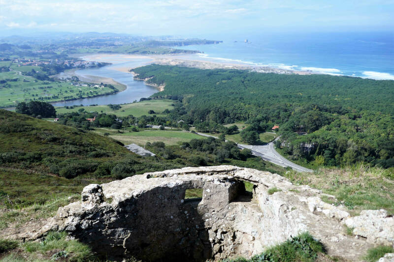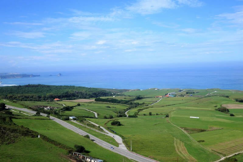 Vandaag trekken we de wandelschoenen weer aan. Even buiten het plaatsje Liencres ligt parallel aan de kust een heuvelrug. Over deze heuvelrug voert een wandelpad waarvandaan je een prachtig uitzicht hebt op de kust. Het start- en eindpunt van de wandeling ligt op zeven kilometer van onze camping. Veertien kilometers extra over asfalt vinden we niet leuk, vandaar dat we er met de camper naar toe willen rijden. Maar op zaterdag en met bovendien mooi weer is het extra druk langs de kust. Met Google hebben we een parkeerplaats bij een sporthal gespot en naar verwachting zal daar wel een plekje zijn om de camper te stallen. De wandeling wordt daardoor iets langer, maar naar al snel blijkt hoeven we daar geen spijt van te hebben. Pittig steil omhoog dat wel, maar daarna volgt een reeks spectaculaire vergezichten.