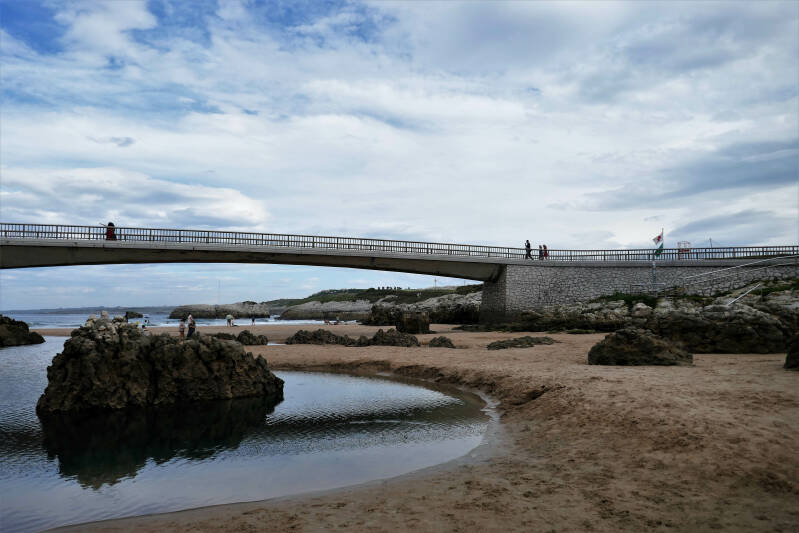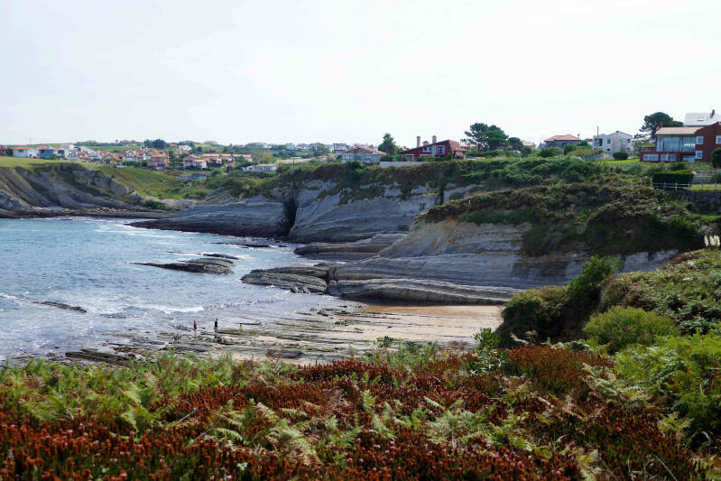 Vandaag moet de was weer worden gedaan en daarna ook de wekelijkse boodschappen. Voor dat laatste zoeken we de supermarkten van de stad Torrelavega op. Maar de wasserettes daar zijn zonder parkeerplek voor onze camper. Maar geen nood, gisteren zagen we in Santillana vlak naast de pizzeria een wasserette met een groot parkeerplein erbij. Vanmorgen op tijd uit de veren dus, want de wasserette zou volgens Google om acht uur open gaan en dan zijn er ook nog weinig concurrenten om te wassen en te parkeren. Om half negen staan we op een bijna leeg parkeerterrein bij de wasserette, maar die blijkt (zonder openingstijdvermelding) toch gesloten. Om negen uur nog steeds dicht en ook de plaatselijke slager weet hierop geen antwoord. Pas tegen tien uur kunnen we terecht en daarna weten we driemaal een grote trommel te vullen. In de tussentijd komt een Spaanse parkeerwachtster ons manen om weg te gaan. Nou ja, we hoeven niet echt weg want we hebben betaald, de camper moet ongeveer vijftien meter worden verplaatst. Waarom? Wie zal het zeggen want onze oude plek blijft verder leeg. Na het wassen rijden we een stukje terug naar het stand van Playa de Tagle bij het dorp Suances voor een korte kustwandeling.