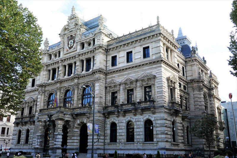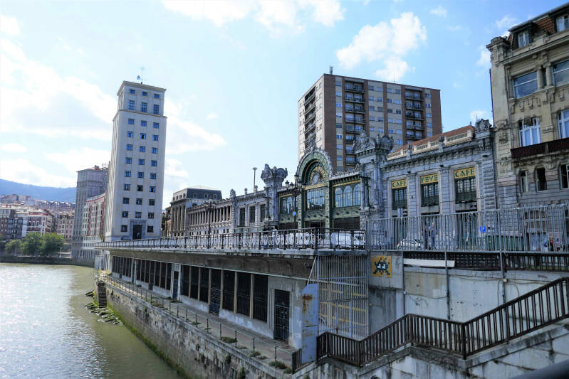 Op de tweede dag van ons verblijf hier gaan we de stad Bilbao bekijken. Weer dus met de bus vanaf de camperplaats naar het centrum, waar eerst het VVV wordt opgezocht. Gewapend met een plattegrond met daarop vermeld de bezienswaardigheden, lopen we direct door naar het oude gedeelte, de Casco Viejo. Bilbao is in 1300 gesticht en in de eeuwen daarna pas langzaam groter geworden. Inmiddels is het een stad met ongeveer 345 duizend inwoners en als je de agglomeratie meerekent bijna 1 miljoen. Lange tijd was het een onaantrekkelijke industrie- en havenstad. Toen eind vorige eeuw een ontvolking op gang kwam heeft men getracht het tij te keren door stadsvernieuwing door te voeren. Zo werd het Guggenheim museum een publiekstrekker en heeft men de infrastructuur opgekrikt door onder meer twee metrolijnen aan te leggen. Het Bilbao van nu heeft dus twee gezichten, het oude gedeelte (de Casco Viego) met smalle straatjes en een nieuw veel groter deel met brede straten en moderne hoogbouw. Al met al vinden we het een beetje tegenvallen.