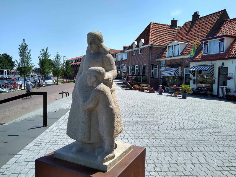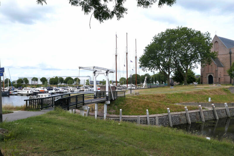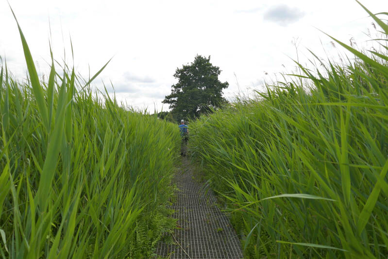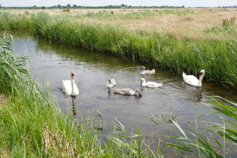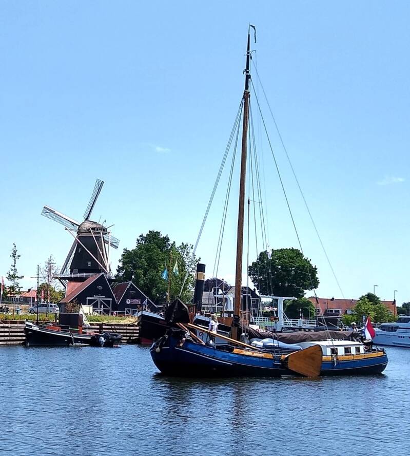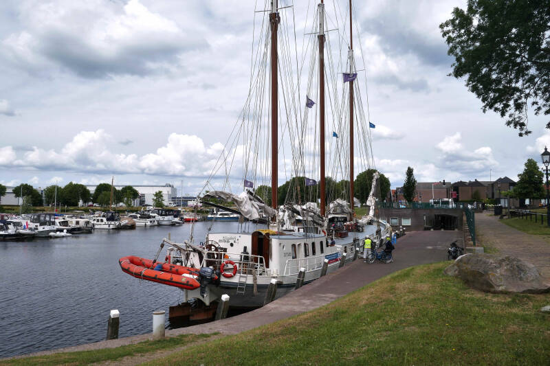 Ook voor vandaag staat een fietstocht gepland. Ditmaal naar het westen, naar het stadje Vollenhove en op de terugweg langs het bezoekerscentrum van het natuurreservaat De Wieden. In totaal ongeveer achttien kilometers. Ook nu rijden we tegen de wind in door een open gebied en meestentijds over de dijk van de voormalige Zuiderzee. In Vollenhove spot Aukje een visrestaurant, dus is het direct duidelijk wat er vandaag op ons bord komt te liggen. En het eten valt zeker in de smaak. Via de haven van de voormalige vissersplaats komen we bij de brug naar de Noordoostpolder, waar we de grote loodsen van Royal Huisman niet kunnen missen. De grondlegger van het bedrijf bouwde indertijd de punters waardoor Giethoorn mede bekend is geworden. Tegenwoordig bouwt men kapitale zeiljachten, waaronder de Flyers waarmee Connie van Rietschoten de Whitbread Round de World races heeft gewonnen. Tegen half vijf parkeren we onze fietsen bij het bezoekerscentrum van Natuurmonumenten. De expositie in het kleine gebouw valt tegen, maar buiten kun je wel een goede indruk krijgen hoe de natuur in verschillende stadia in 80 tot 150 jaar tijd het water in land weet om te zetten.