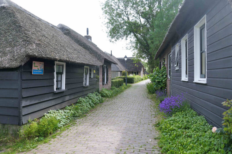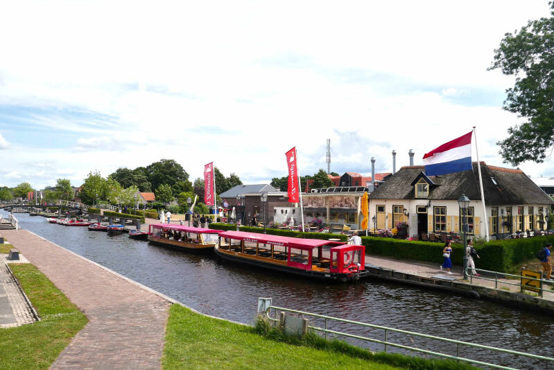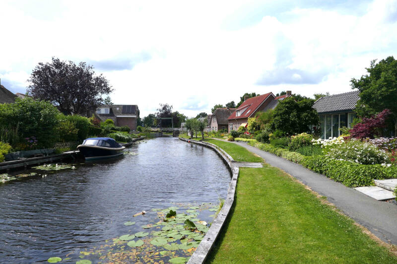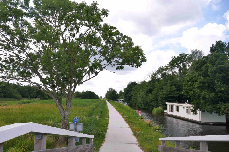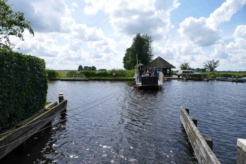 Voor vandaag heb ik weer een fietstochtje gepland. En ditmaal met ruim dertig kilometers een stuk korter dan de vorige. We rijden vanaf de camping eerst naar het zuiden door een open landschap dat wel wat op dat van het Groene Hart in de Randstad lijkt. Totdat we in het dorpje Belt-Schutsloot arriveren. Hier is een smal fietspad dat langs de oever van de Schutsloot voert. Leuk om te fietsen, maar ook uitdagend door de vele smalle hoge bruggetjes die we over moeten. En met wat tegenliggers erbij wordt het nog wat uitdagender. Nadien rijden we naar Giethoorn en vervolgens over de brug naar een pauzeplek bij de jachthaven. Het is de bedoeling om vanaf daar via het Bodelaeke pad verder te fietsen. Dit lukt het eerste stukje ook wel, maar dan komen we bij een draaibrug die buiten gebruik blijkt. De brug is al sinds 2019 kapot en verschillende partijen bekvechten over de vraag wie hem moet herstellen, zo blijkt uit een artikel dat is later op internet heb gevonden. Er zit niets anders op dan om te keren, een stuk terug te rijden en een andere route te zoeken. Weer terug op het juiste pad dient een stuk verderop een andere hindernis zich aan. In het buurtschap Jonen zorgt een vaarroute tussen het Giethoornse meer en de Beulakerwijde voor een wegversperring. Gelukkig vaart er een fietspontje waarvoor we bij een automaat met uitsluitend pinbetaling een kaartje kunnen kopen. Het buurtschap Jonen is per auto alleen vanaf de overzijde via het pontje bereikbaar. De bewoners hebben dan ook allemaal een eigen genummerde parkeerplek waar de auto gestald kan worden voordat men via het pontje de woning bereikt. Na het pontje vormt alleen de felle tegenwind nog een uitdaging, iets waar onze e-bikes wel raad mee weten.