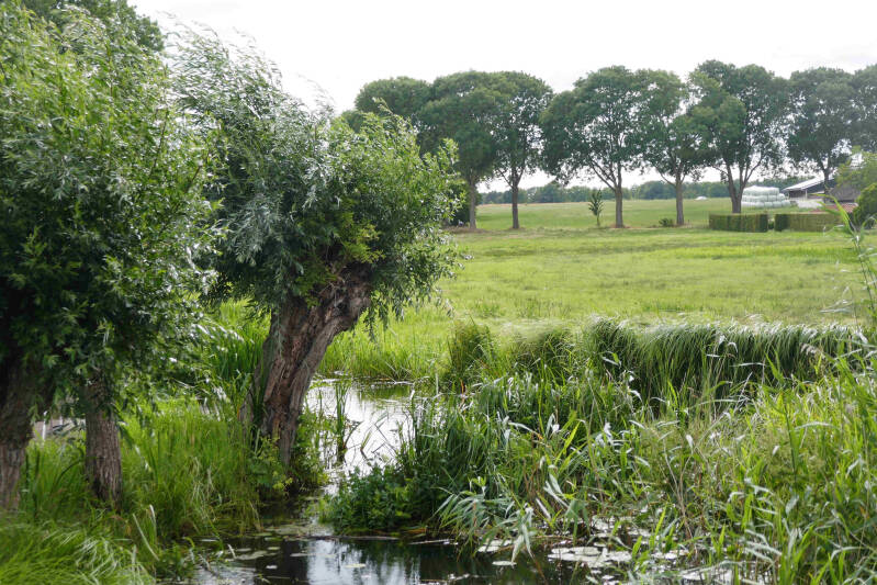 In tegenstelling tot de Veluwe, geen bos maar open gebied en veel water. De streek van het natuurpark Weerribben-Wieden. Camping Heetveld, vlakbij het gelijknamige buurtschap, ligt niet ver van Sint Jansklooster. Voor schaatsliefhebbers: de voormalige woonplaats van tweevoudig Elfstedentocht winnaar Evert van Benthem. Omdat Evert tegenwoordig in Canada woont, zullen we hem hier niet tegenkomen. De campingeigenaar heeft nog juist één plekje beschikbaar, dus veel te kiezen hebben we niet. We staan in een cirkel op een open veld en vanwege de felle zon en de hoge temperatuur parkeren we de camper met de dichte zijde naar het midden. Niet erg ‘gezellig’ voor de anderen, maar wel een beetje koeler voor onze koelkast.