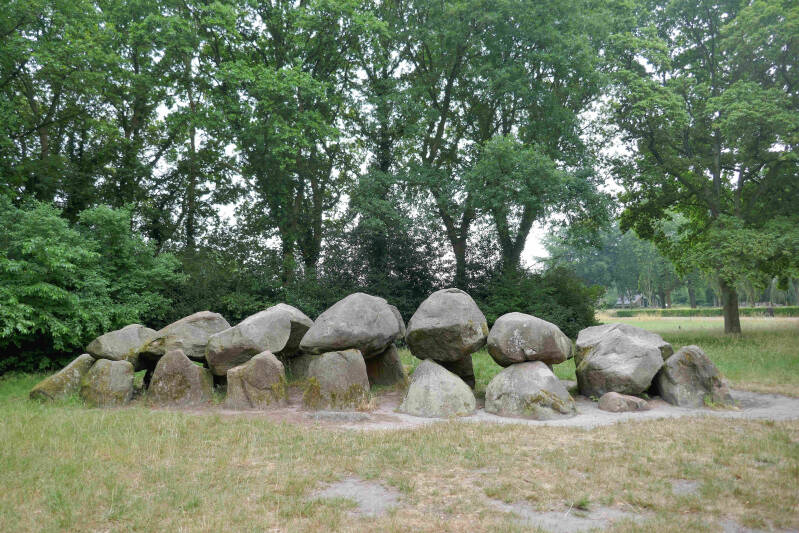Voor onze volgende stop heb ik de omgeving van Rolde in Drenthe op het oog. Bij de eerste camping die ik probeer vang ik bot, maar bij camping De Weyert vertelt men dat men nog volop ruimte heeft. Ook ditmaal een ritje van ongeveer zeventig kilometers, die wat langer duurt vanwege een stop voor diesel, boodschappen en de koffiepauze. De campingbeheerder laat ons zelf een plek uitzoeken en dat lukt prima, want naar schatting nog geen tien procent van de plekken zijn bezet. Tegen de avond maken we een ommetje in de omgeving. Dat betekent onder meer een bezoek aan de begraafplaats en aan een tweetal hunebedden. Oók begraafplaatsen, maar dan ietsje ouder.