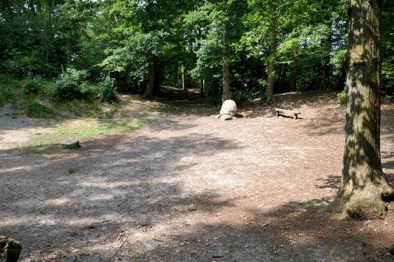 Nu we de smaak te pakken hebben, besluiten we om nog maar een fietstochtje in de omgeving te maken. Ditmaal naar het zuiden, via de buurtschappen Elderslo en Ekehaar naar Grollo. Op maar een paar honderd meter vanaf onze camping voert de route langs de Balloërkuil. Niet meer dan een gat in de grond met een diameter van zo’n 25 meter, met daaromheen een aarden wal. Maar tot een eeuw geleden dacht men daar heel anders over. Toen veronderstelde men dat het vroeger een vergaderplaats was, onder meer voor de z.g. Etstoel en dat de aarden wal daarbij als een soort tribune dienst deed. Als men deze contreien bezocht dan waren de hunebedden en de Balloërkuil een ‘must’. Zo ook voor koningin Emma die in 1895 met haar dochter Wilhelmina deze plek bezocht.