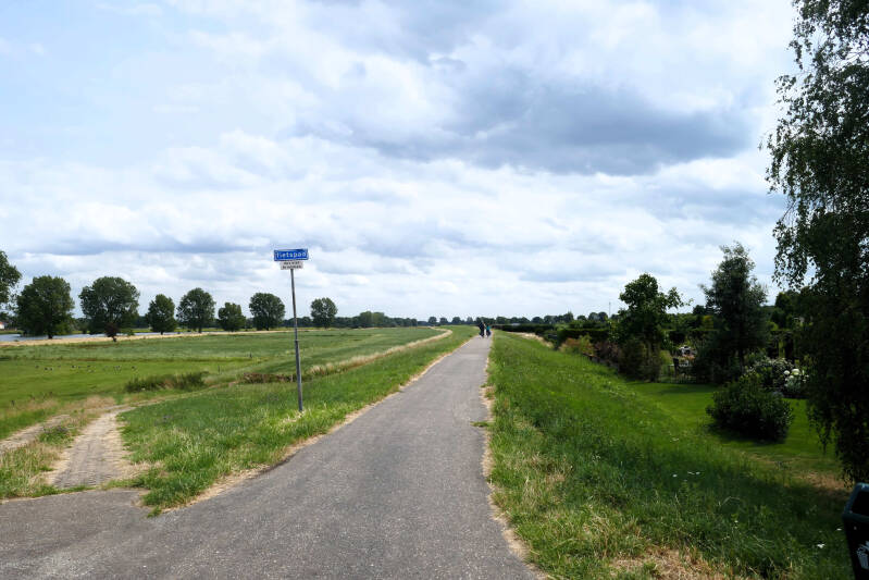 Voor morgen staat een fietstocht door het Land van Cijk op het programma. Daarom rijden we vandaag alvast die kant op. Na een ritje van 205 km melden we ons bij camping de Bloksberg even buiten Gennep. Een mooie camping aan een natuurlijk meertje en met volop bomen en heggen rondom ons. Hoewel niet zo rustig als op onze vorige camping, maar toch wel weer aardig wat privacy.