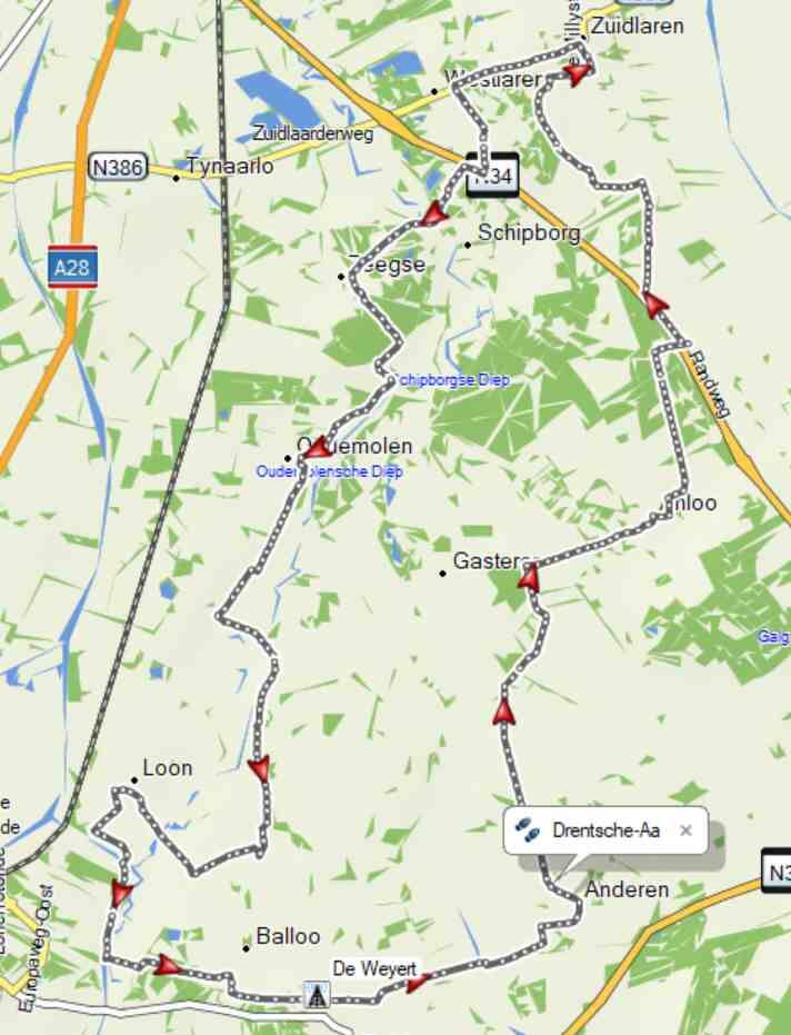 Vandaag staat een fietstocht langs de Drechtsche Aa route op het programma. Een tocht van ongeveer 40 km vanaf Rolde naar het noorden tot aan het dorp Zuidlaren. We starten in de namiddag en nemen koffie mee voor onderweg. Een mooie en afwisselende rit volgt, waarbij we via de dorpjes Anderen en Anloo naar Zuidlaren rijden, waar we onze koffiepauze houden. Op de terugweg volgen we de slingerende beek Drentsche Aa, die in dit gebied achtereenvolgens: Schipborgse Diep, Oudemolensche Diep, Taarloosche Diep en Looner Diep wordt genoemd, naar de verschillende buurtschappen waar de beek langs stroomt. Erg ‘diep’ is de beek overigens niet en het wordt dus niets als je er met een boot doorheen wilt varen.