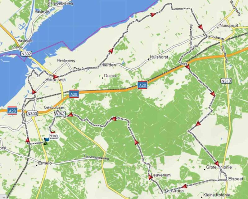Vandaag staat een fikse fietstocht op het programma. Een rondje van meer dan vijftig kilometers via: Harderwijk, Nunspeet, Elspeet, Staverdun en Leuvenum. Niets bijzonders voor onze e-bikes, maar wel even wennen voor het achterwerk. De route gaat gelukkig vrijwel geheel over fietspaden, maar het eerste stuk tot in Harderwijk is toch wel behoorlijk druk. Vanaf Harderwijk rijden we door open terrein richting Nunspeet. Na Nunspeet dient het bos zich aan, wat op zich ook wel weer lekker fietst. Met nog een tweetal rustpauzes onderweg vinden we het bij terugkomst op de camping ook wel weer welletjes geweest voor vandaag. Morgen houden we daarom een rustdag, zodat we zondag weer fris naar onze volgende etappeplaats kunnen vertrekken.