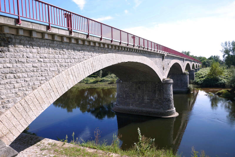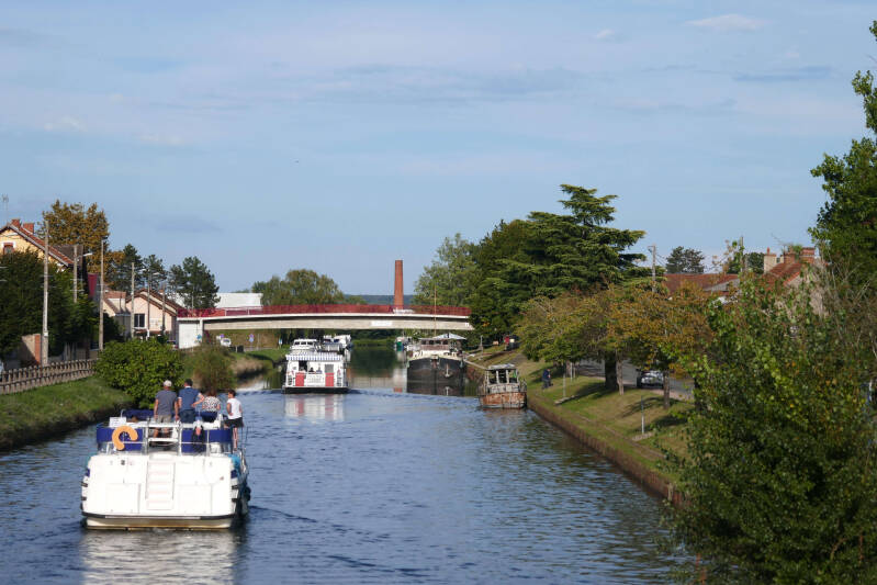 Volgens onze info is Digoin vooral bekend om zijn keramiek en om het viaduct over de Loire. De Fransen hebben twee eeuwen terug het Canal du Centre gegraven dat de rivier de Loire met de Saône verbindt. Bij Digoin kruist het Canal du Centre de Loire via een viaduct op ongelijk niveau met direct daarachter een sluis. We hebben een route uitgezocht die ons via een struinpad door de natuur met vooral veel Japanse Duizendknoop bij het viaduct brengt. Toevallig wordt er juist een rondvaartboot in de sluis geschut. Vanaf het viaduct gaat we niet rechtstreeks naar het centrum, maar via een fikse omweg naar de McDonalds. Vanwege de muggen ziet Aukje het niet zitten om op de camping buiten te koken en te eten, dus kiezen we voor deze noodgreep. Op de weg terug gaat de route door het centrum van Digoin en verder langs de Loire tot aan de camping. Een leuke wandeling van ca. 8 kilometers en tevens een recordafstand voor Aukjes nieuwe knie.