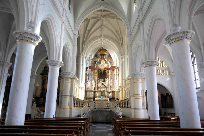 Vanmorgen kunnen we nog even gezellig bijpraten met onze ‘camping baas’ Fardin, voordat we even na twaalven vertrekken. Nu we toch in de buurt zijn maken we een tussenstop in Thorn. Op dit tijdstip is het nog niet al te druk en voor campers heeft men ook aan een speciale parkeergelegenheid gedacht. Centraal in het dorp met de wit geschilderde huisjes staat de abdijkerk en dus gaan we daar ook een kijkje nemen. Vooraf krijgen we een mooie film over de geschiedenis van Thorn te zien en vooral het prachtige interieur van de kerk stelt ons niet teleur.