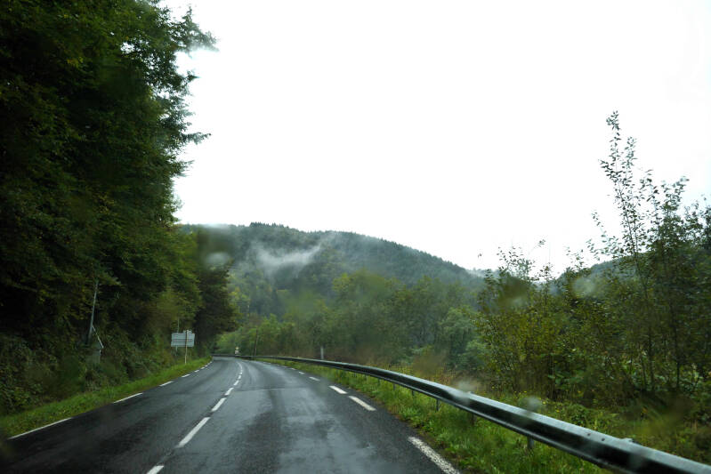 Vandaag en de komende dagen wordt in een groot deel van west Europa buiig weer verwacht. Ook al zouden we een paar honderd kilometers naar het zuiden rijden, dan nog zouden we aan de regen niet kunnen ontkomen. Geduldig afwachten dus en het beste er maar van maken. Op maandag vermaken we ons in de camper met leeswerk en kunnen we even bijkomen van de toch wel hectische week die we achter de rug hebben. Dinsdag ziet het weer er al beter uit en blijft het overdag in ieder geval droog. Voor ons het sein om een rondwandeling in de omgeving te maken. Het wordt een boswandeling, maar na een paar honderd meter blijkt het pad door de regen van de afgelopen dagen onbegaanbaar geworden.