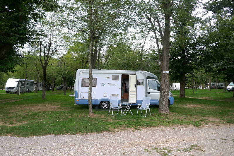Na nog een rondwandeling door de historische kern is het toch al weer half drie wanneer we richting Frankrijk vertrekken. Een telefoontje naar de campinghoudster leert mij dat haar bureau om zeven uur sluit, dus mogen we verder niet treuzelen. Na een korte pauze voor een thuis voorbereide warme hap bereiken we even voor zevenen de camping vlak buiten het plaatsje Buzancy, ongeveer vijftig kilometers over de Franse grens. We krijgen een plekje met verharde ondergrond toegewezen en dat lijkt ons niet verkeerd vanwege de periodes met regen die ons de komende dagen te wachten staan.