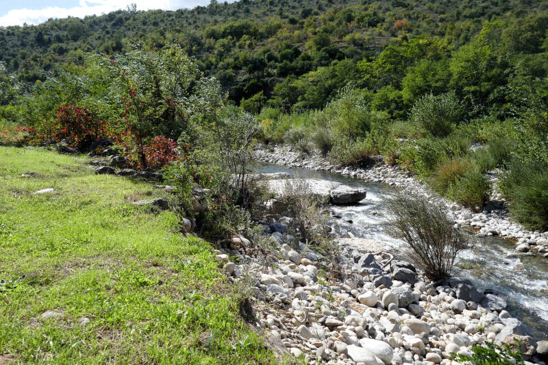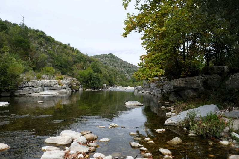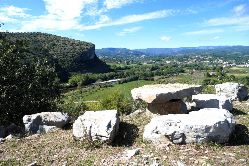 Na de inspanning van gisteren nemen we vandaag wat gas terug. Voor Aukje betekent dit een wandeling langs de oever van de rivier La Baume, terwijl ik me met wat huishoudelijk werk in en rond de camper bezig houdt. Oh, ja Aukjes knie was vanmorgen wel wat stijver, maar heeft de wandeling van gisteren verder goed doorstaan.