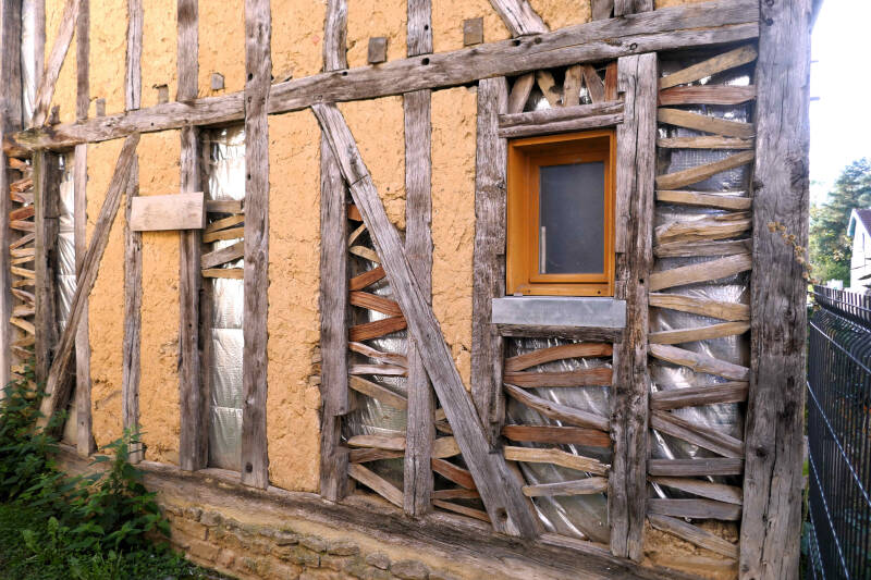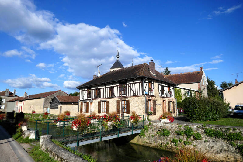 Volgens onze informatie moet het kleine dorp Soulaines de moeite van het bekijken waard zijn. Vandaag, vrijdag, gaan we gewapend met een folder van het toeristenbureau op pad om te kijken wat daar van waar is. We volgen de aangegeven route en komen behalve langs de kerk, langs verschillende vakwerkhuizen uit de vijftiende tot de zeventiende eeuw. En ditmaal zien ze er goed onderhouden uit. Het geheel wordt opgefleurd door bloembakken en de beek de ‘la Laines’ die dwars door het dorp stroomt maakt het een leuk geheel. Kortom een leuke rondwandeling en ditmaal door een dorp dat er voor Franse begrippen zeer goed onderhouden uitziet.