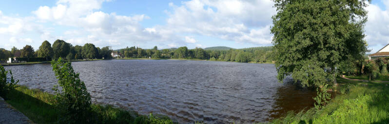 Maandagmorgen was het bij het wakker worden zonnig, maar in de loop van de dag trekt de lucht dicht. De temperatuur blijft op 18 steken en met en flink windje erbij voelt het fris aan. Voor Aukje het sein om het beddengoed te verwisselen en allerlei ander huishoudelijke werkzaamheden op te pakken. Gezien de weersverwachting voor vandaag besluiten we om lekker binnen te blijven en ons op het leeswerk te storten. Dinsdag is het weer al iets beter en in de namiddag maken we een wandeling rond het meer nabij de camping. De route gaat door een gevarieerd terrein, met bos en ook nog over een beek. Het laatste stuk volgen we de oever van het meer. Kortom, een leuk traject van vier kilometers en naar het zich laat aanzien ook prima voor Aukjes knie.