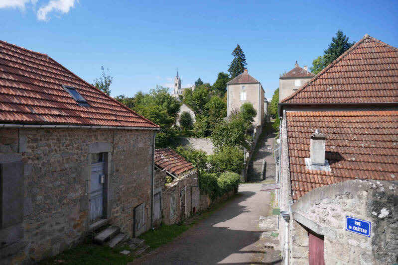 Vandaag, woensdag, gaan we te voet het plaatsje Lormes verkennen. Volgens de route die we van de campingeigenaar hebben gekregen ook weer een rondwandeling van ongeveer vier kilometer, maar door wat omzwervingen komt er nog een kilometertje bij. Lormes ligt tussen de heuvels en op een kruispunt van wegen. Het dorp kent flinke hoogsteverschillen met de kerk op het hoogste punt. Het dorp vervulde vroeger een centrumfunctie en had flink wat winkels. Net als andere Franse dorpen is er sprake van leegloop, zodat je in de vroeger levendige winkelstraat al veel leegstand ziet. De wandeling is niettemin zeer gevarieerd en zeker de moeite waard. Bovendien was het vandaag ideaal wandelweer, niet te warm en met een heerlijk zonnetje erbij.