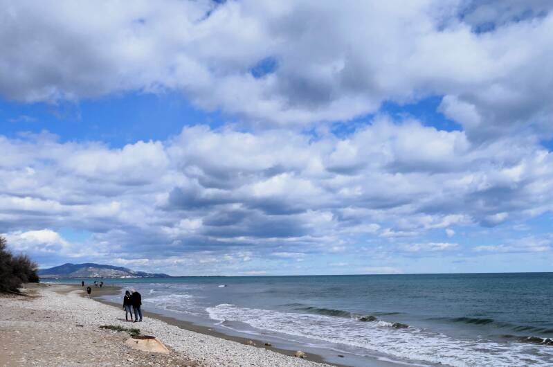 Zoals het in Spanje vaker gaat, belooft men van alles en schuift men het daarna op de lange baan. Zo ook met onze stroomaansluiting, want ook de volgende dag blijken alle stroomaansluitingen rond onze plek vol bezet en kan men ook hier niet toveren. Ja, bij de eerder door Maria aangeboden plek is er wel stroom… maar op die plek willen wij weer niet staan. We kiezen ervoor om dan maar zonder stroomaansluiting de week door te komen. Een mooie gelegenheid om mijn zelfgebouwde LiFePo4 batterij uit te testen. Het weer is de afgelopen dagen prima geweest. Woensdag brengen we vooral lezend in het zonnetje door en op donderdag maken we een leuke wandeling langs het strand en door een natuurgebied.