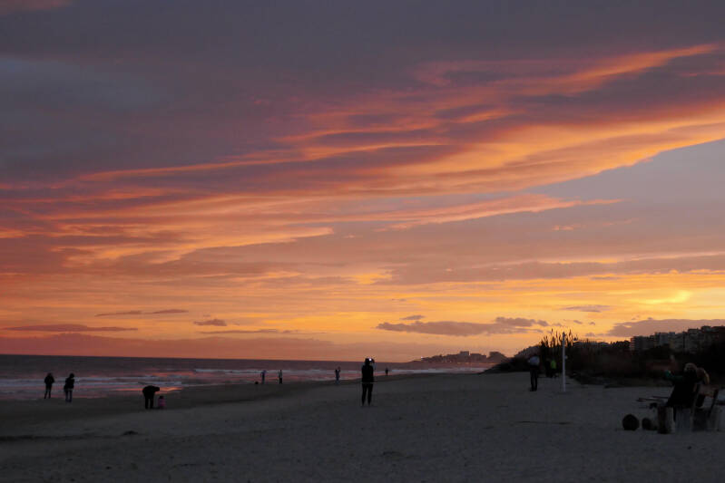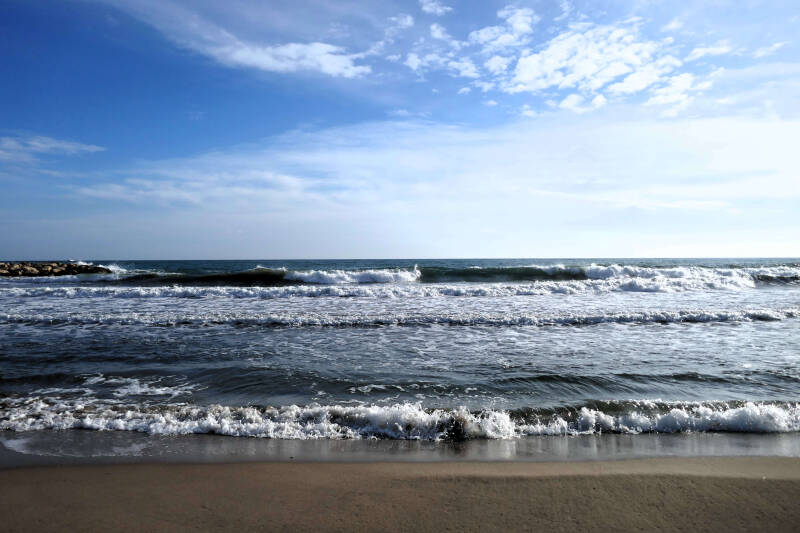 In deze tijd van het jaar natuurlijk geen drukte of strandgasten, maar ook geen afgeleefde boel. Van Callela herinner ik me de centrale straat van een paar kilometers lengte, de Carrer de l’Eglesia (Kerkstraat) die op honderd meter afstand parallel aan de spoorlijn naar Barcelona loopt en helemaal doorgaat tot aan…. de kerk, natuurlijk. Hier wurmde de meute zich ‘s avonds doorheen op zoek naar winkel, terras, bar of disco. Midden in de winter en overdag is het nu andere koek natuurlijk, maar het is toch opvallend dat het nu ook behoorlijk druk is en er een gezellige sfeer hangt. Kortom, ook voor een overwinterende camperaar is een bezoekje aan of verblijf in de buurt van Callela zo gek nog niet.