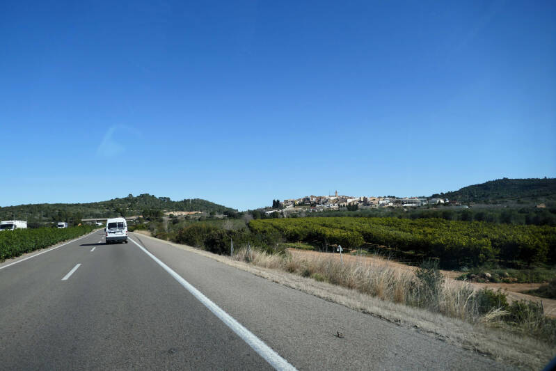 Vanmorgen begin ik om acht uur met het ontbijt, maar het is toch al weer twee uur later als alle klusjes zijn gedaan en we onze vrienden gedag hebben gezegd. Het eerste doel is een tussenstop in Cambrils, om in de grote Esclat super nog wat inkopen te doen en we tegelijk ook een koffiepauze houden. Daarna is het drie uur rijden naar onze volgende stop: het gasdepot bij Figueres voor een nieuwe volle gasfles, waar we in de zomer mee voort kunnen. Maar bij Figueres blijkt de snelweg afgesloten en ook richting de stad zelf wordt het verkeer omgeleid. Volgens zeggen vanwege de boerenprotesten, maar wij zien in plaats van boze boeren alleen maar dirigerende politiemensen. Enfin, met wat filerijden en tien kilometer extra is ook dit ongemak overwonnen en kunnen we ons rond half zes bij onze overnachtingscamping in Capmany melden.