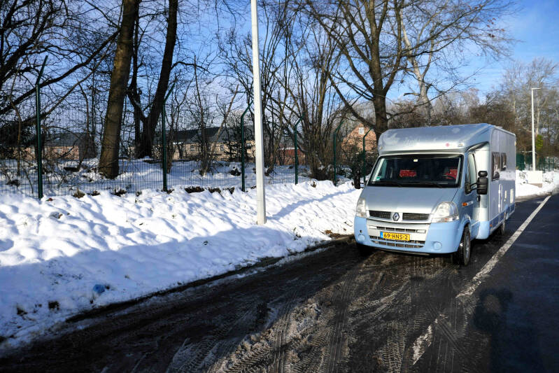 Afgelopen nacht heeft het flink gevroren en zakte het kwik tot meer dan acht graden onder nul. Voor ons geen probleem, want met zowel een elektrisch kacheltje als de gaskachel van de camper hebben we het 's morgens snel op temperatuur. Maar het ijs stond aan de binnenzijde van de camper dik op de voorruit.