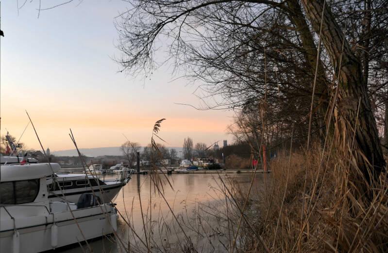 De moezel met hier en daar ijs er op..... ook de bootjes hebben het koud