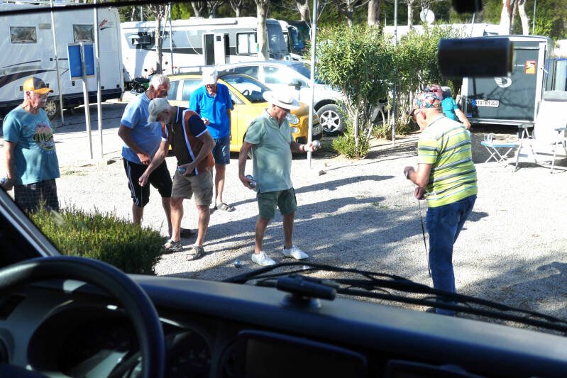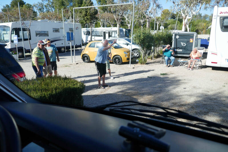 Vanmorgen stond de wekker op zeven uur afgesteld. Niet dat we tot dat moment geslapen hebben, want vannacht was het weer raak wat de wind betreft. Bij aankomst was het prachtig weer en ook toen we naar bed gingen was het nog windstil. Maar in een oogwenk veranderde dat en bleek er een heuse storm losgebarsten. En weer zo’n typisch Spaanse met bulderende windvlagen gevolgd door korte pauzes van aanzienlijk lagere windkracht. De Viento Loco (gekke wind) zoals een Spaanse vrouw mij tijdens onze eerste overwintering jaren geleden vertelde. Enfin, vroeg opstaan heeft ook zijn voordelen, want om negen uur verlieten we de camping op weg naar de Spaans/Franse grens. Vlak vóór de grens nog even diesel tanken en vervolgens de snelweg op. Net voorbij de grens zagen we plots een kilometers lange rij met alleen vrachtwagens die op de snelweg tot stilstand waren gebracht. Zo’n lange sliert vrachtwagens hebben we nog nooit eerder gezien. Op de camperplaats waar we nu verblijven, vertelde een Nederlandse vrouw dat de politie alle personenwagens van de snelweg stuurde, waarna men de reis richting Spanje over binnenwegen kon vervolgen. Die arme vrachtwagenchauffeurs waren het haasje en moesten lijdzaam afwachten. Wij reden in tegenovergestelde richting en hadden nergens last van, behalve van de stevige wind die het eerste stuk dwars op de camper stond.