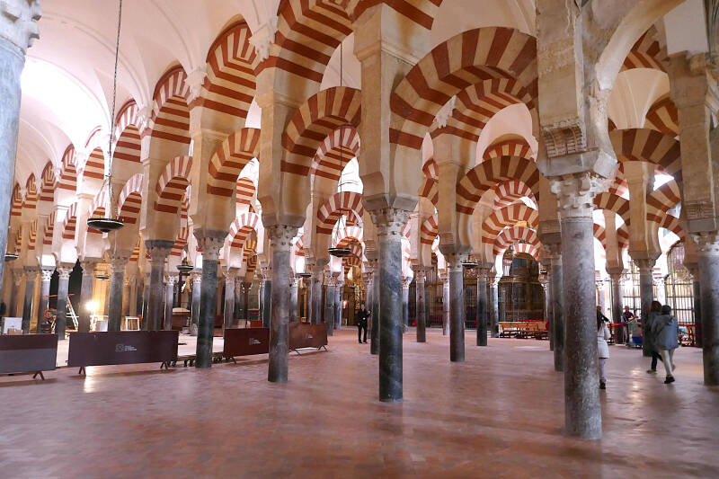 In Spanje heeft het Islamitische rijk drie verschillen hoofdsteden gekend: Cordoba, Sevilla en Granada. Cordoba is de oudste hoofdstad van de drie. Abd al-Rahman I, een uit Damascus gevlucht lid van de Omajjiden, kwam in 756 in Spanje aan en stichtte in Cordoba een emiraat. In 785 gaf hij opdracht om met de bouw van een moskee (Mezquita) te starten op de plaats waar voorheen een Romeinse tempel en later een Christelijke kerk was geweest. Gedurende de negende eeuw ontwikkelde het emiraat zich steeds meer op economisch, cultureel en militair gebied. In 912 besteeg Abd al-Rahman III de troon en benoemde zich in 929 tot kalief en riep daarmee het kalifaat van Cordoba uit dat tot 1032 zou blijven bestaan. Cordoba was in deze periode een centrum van Berberse, Arabisch en Joodse cultuur. Tijdens het kalifaat werd de moskee steeds verder uitgebouwd totdat het met een oppervlakte van 23400 vierkante meter de op één na grootste (na Mekka) moskee ter wereld werd. Na de verovering van Cordoba door Ferdinand III van Castilië maakte hij van Cordoba een Christelijke bisschopsstad en liet vanaf 1236 in de Mezquita een hoofdkapel bouwen. In latere perioden zijn tijdens het bewind van opeenvolgende Christelijke heersers verdere toevoegingen en wijzigingen doorgevoerd, waardoor zich thans midden in de vroegere moskee een prachtige (maar ook protserige) kathedraal bevind. Klik op onderstaande buttons voor een link naar meer informatie over de geschiedenis van het moslimrijk in Spanje en over het Kalifaat van Cordoba.