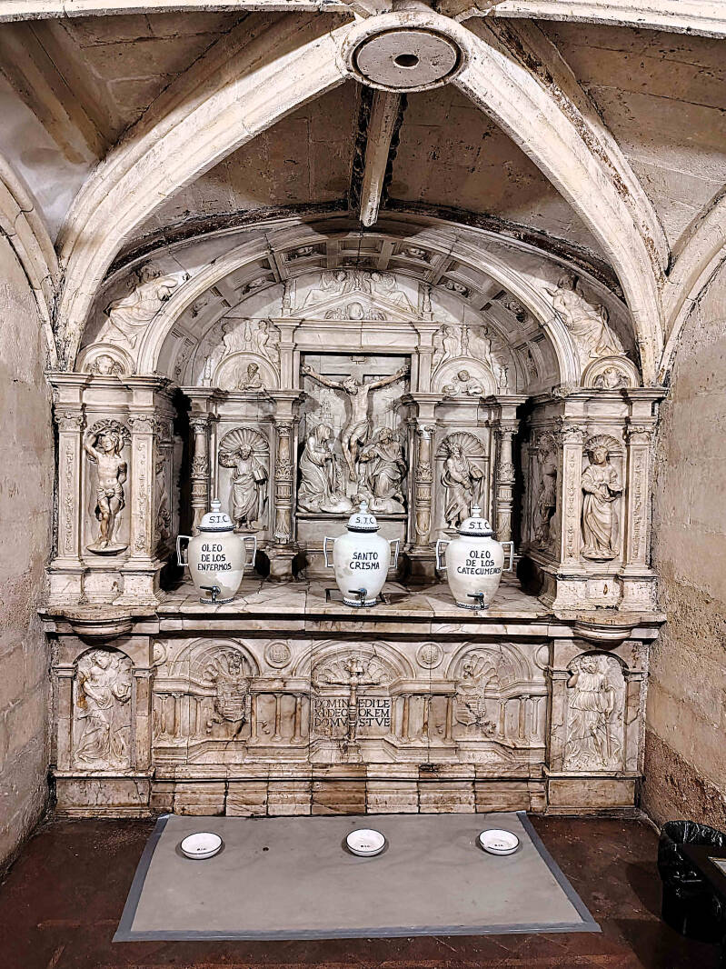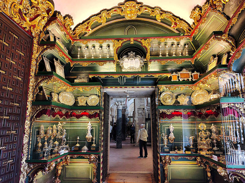 Net als afgelopen zaterdag staat de wekker vandaag ook op kwart voor zeven afgesteld. Eerst ontbijten, aankleden, tandenpoetsen, afwassen en daarna de camper vertrekgereed maken. Dat betekent dat we toch alweer twee uur later is als we van de camping vertrekken. Een half uurtje later parkeren we, net als zaterdag, op de camperplaats nabij het centrum van Cordoba. Na nog een bakkie koffie gaan we op pad naar de Mezquita, de vroegere moskee waarin later een kathedraal is gebouwd. Gelukkig staat er geen rij voor de kassa dus kunnen we snel naar binnen. Wat direct opvalt is dat de moskee een enorm aantal zeer solide maar identieke zuilen herbergt maar verder weinig versieringen uit de islamitische periode kent. Dit in tegenstelling met het christelijke gedeelte, dat overladen is het gedetailleerde verfraaiingen zowel in de vele kapellen als in de kathedraal. Zie voor info over de Mezquita en de foto’s het aparte stukje verderop. Na ons moskee-kerkbezoek lopen we naar de volgende bezienswaardigheid: het Alcazar, officieel het Alcázar de los Reyes Cristianos ofwel het paleis van de Christelijke koningen. De oorsprong hiervan gaat eveneens terug tot de stichting van het Islamitische emiraat en zowel de kaliefs als de latere christelijke koningen gebruikten het als hun residentie. Het paleis is talloze keren verbouwd en nog niet zo lang geleden ontdekte men muurversieringen die stammen uit de eerste periode na de stichting. Het paleis met zijn twee torens is niet spectaculair, maar het heeft wel een mooie grote binnentuin zoals gebruikelijk was. Net zoals bij voorbeeld de Generalife nabij het Alhambra van Granada. Na afloop van het bezoek aan het Alcazar lopen we naar de camper terug voor een koffiepauze, waarna we de rit naar het noorden aanvangen. Ons doel is de camping nabij het plaatsje Almagro op zo’n 220 km afstand. Een mooie rit die voor het grootste deel over goed berijdbare binnenwegen gaat. Onderweg stoppen we in Puertollano voor het doen van inkopen, zodat het inmiddels alweer kwart over zes is als we bij camping Los Arenales in Almagro (N38.880002, W3.696173) aankomen. En, prachtig weer vandaag en dat maken we ook niet dagelijks mee.