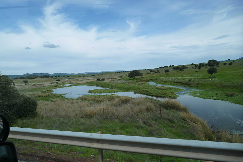 Ons plan was om vanaf de camping in Almagro naar Toledo te rijden, een afstand van ongeveer tweehonderd kilometers naar het noorden. Maar op de Spaanse TV zagen we beelden van nieuwe overstromingen als gevolg van stormdepressie Martinho. Die beelden bleken afkomstig uit de omgeving van Toledo, waar de rivier de Taag door de hevige regenval voor fikse overstromingen zorgt. Het weerbericht voor de komende dagen geeft voor Toledo nog meer regen aan en dat terwijl wij hier in Almagro al verlangend uitkijken naar het einde van de periode met regen, wind, kou en gebrek aan zon. Alles bij elkaar doet ons besluiten om van ons bezoek aan Toledo af te zien en in plaats hiervan de oostkust van Spanje op te zoeken. Een eerste stap hiertoe is de rit van vandaag naar Albacete, ook tweehonderd kilometers maar dan pal oostwaarts. We vertrekken vanmorgen nog met regen en een schamele acht graden, maar onderweg wordt het weer langzaamaan wat vrolijker en tegen de tijd dat we in Albacete arriveren schijnt de zon. In de omgeving van Albacete is geen geschikte camping maar de stad heeft wel een prima camperplaats.