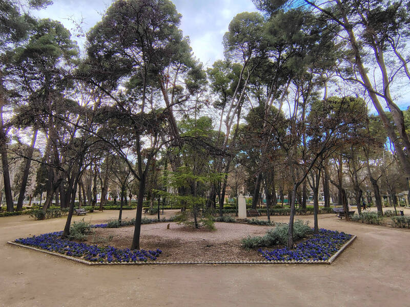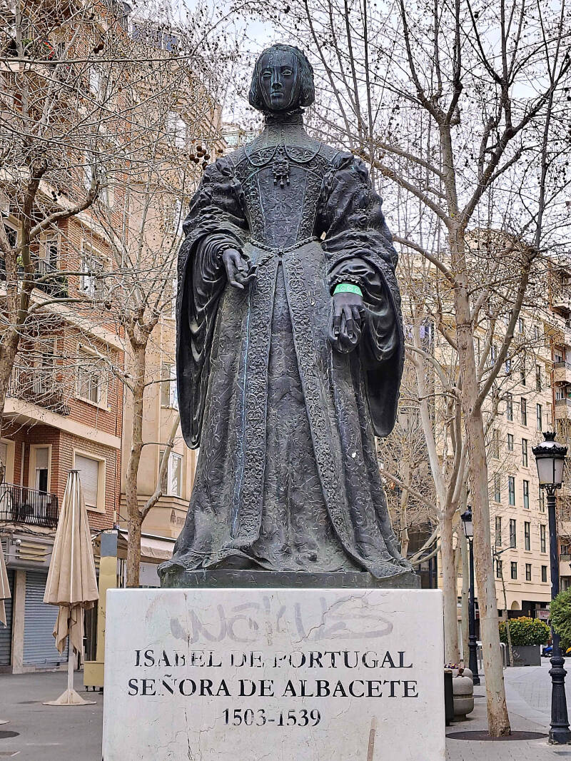 Als wij rond half twee arriveren staan er al ruim twintig campers, terwijl er officieel maar vakken voor in totaal acht campers beschikbaar zijn. Gelukkig is iemand net vertrokken en die heeft voor ons een vak op een prima plek open gelaten. Voordat we de stad gaan verkennen kookt Aukje eerst de warme hap voor vandaag, zodat we met gevulde magen op stap gaan. Het is vanaf de camperplaats een kleine twee kilometers tot aan het centrum, zodat deze wandeling ook voor Aukjes knieën weer een goede oefening is. Albacete is de hoofdstad van de gelijknamige provincie in de regio Castilië-La Mancha en telt ruim honderdtwintig duizend inwoners. De stad maakt een bruisende indruk met veel goed ogende gebouwen. We maken een rondje door het centrum en zien dat verschillende straten met dranghekken zijn afgezet. Bij navraag blijkt gisteren de jaarlijkse Duathlon van Albacete te zijn gehouden, een evenement waarbij je moet hardlopen, fietsen en vervolgens weer moet hardlopen. Gezien de omvang van de verschillende podia moet het een flink spektakel zijn geweest. Nadat wij ons rondje hebben afgemaakt trekken we ons weer terug in de camper om morgen verder te reizen.