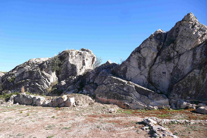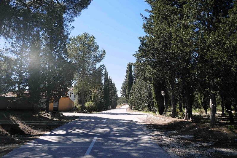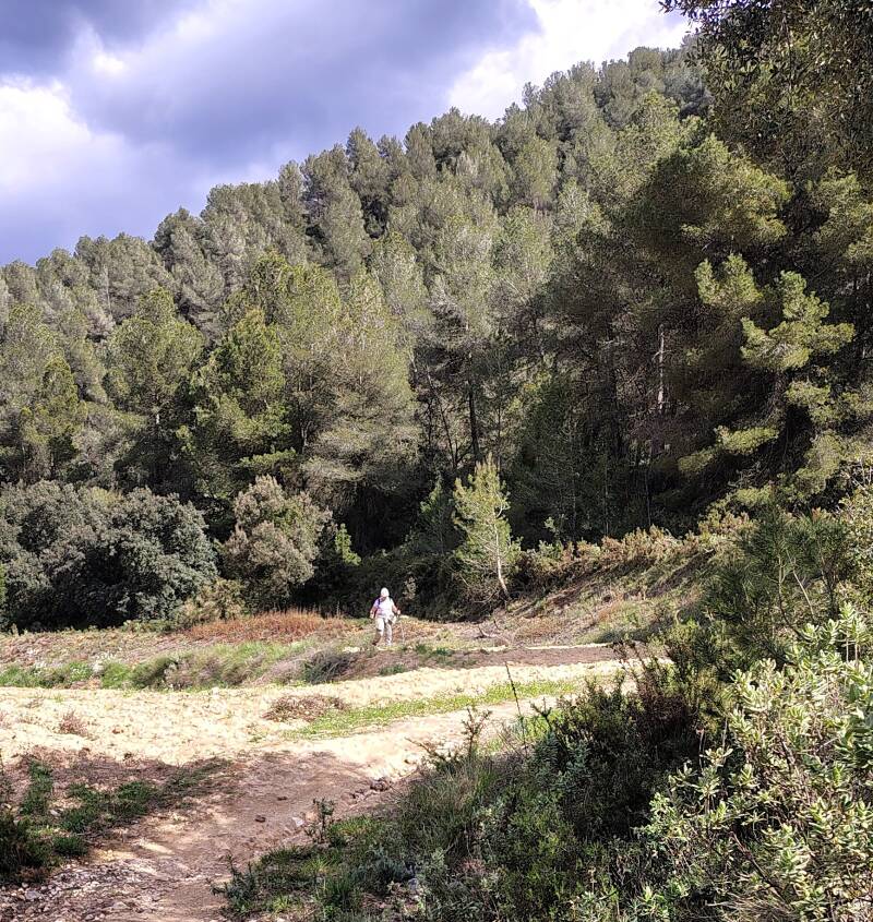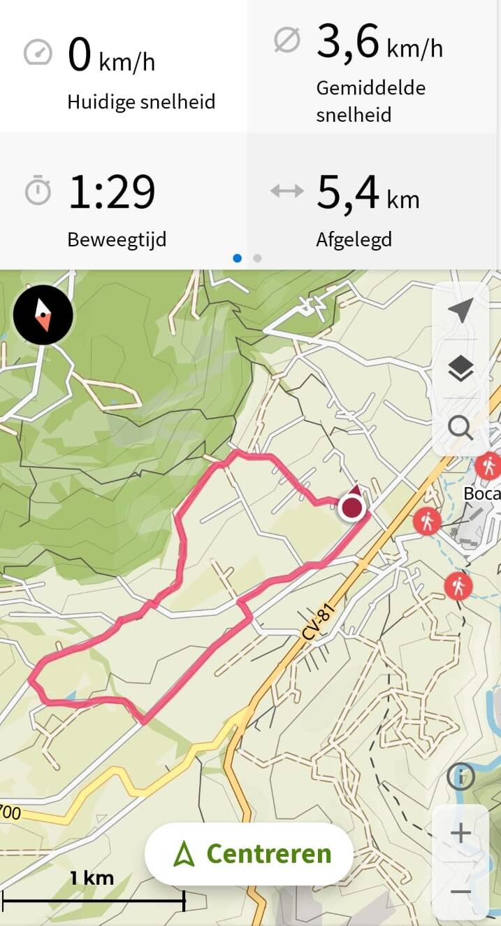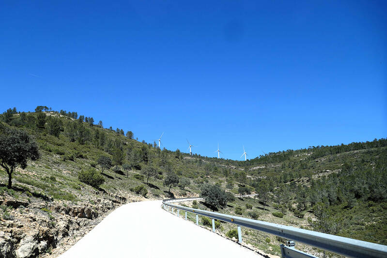 Onze camping ligt aan de voet van het Parc Natural de la Serra Mariola, mede waardoor er volop wandelmogelijkheden in deze omgeving zijn. Voor ons zij de meeste wandelingen in dat gebied nog een brug te ver en daarom houden we het vandaag bij een rondwandeling aan de voet van van het natuurpark. Een wandeling die het eerste deel het tracé van de Via Verde volgt en daarbij dus nagenoeg vlak en dus ook makkelijk beloopbaar. Daarna gaan we geleidelijk omhoog en volgen we een goed beloopbaar pad totdat we bij een stuk komen waar Aukjes knieën echt op de proef worden gesteld. Uiteindelijk komen we weer op asfalt uit en gaat het omlaag terug naar de camping. Al met al best een mooie wandeling en precies zwaar genoeg om haar kniebanden te oefenen.